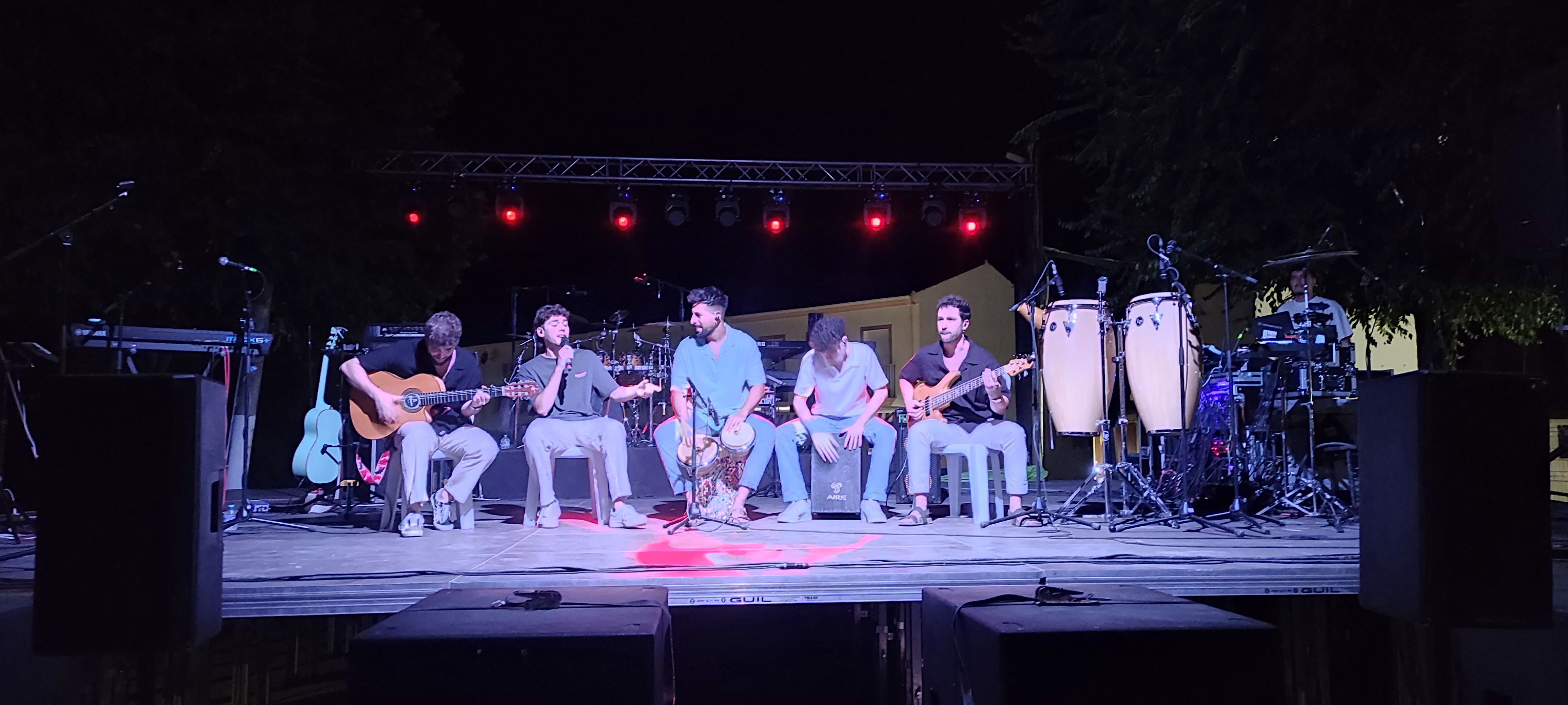 La noche arrancó con la actuación del grupo juvenil Asere, que con sus versiones y temas propios animó al público, dando comienzo a una velada que se prolongó hasta bien entrada la madrugada.