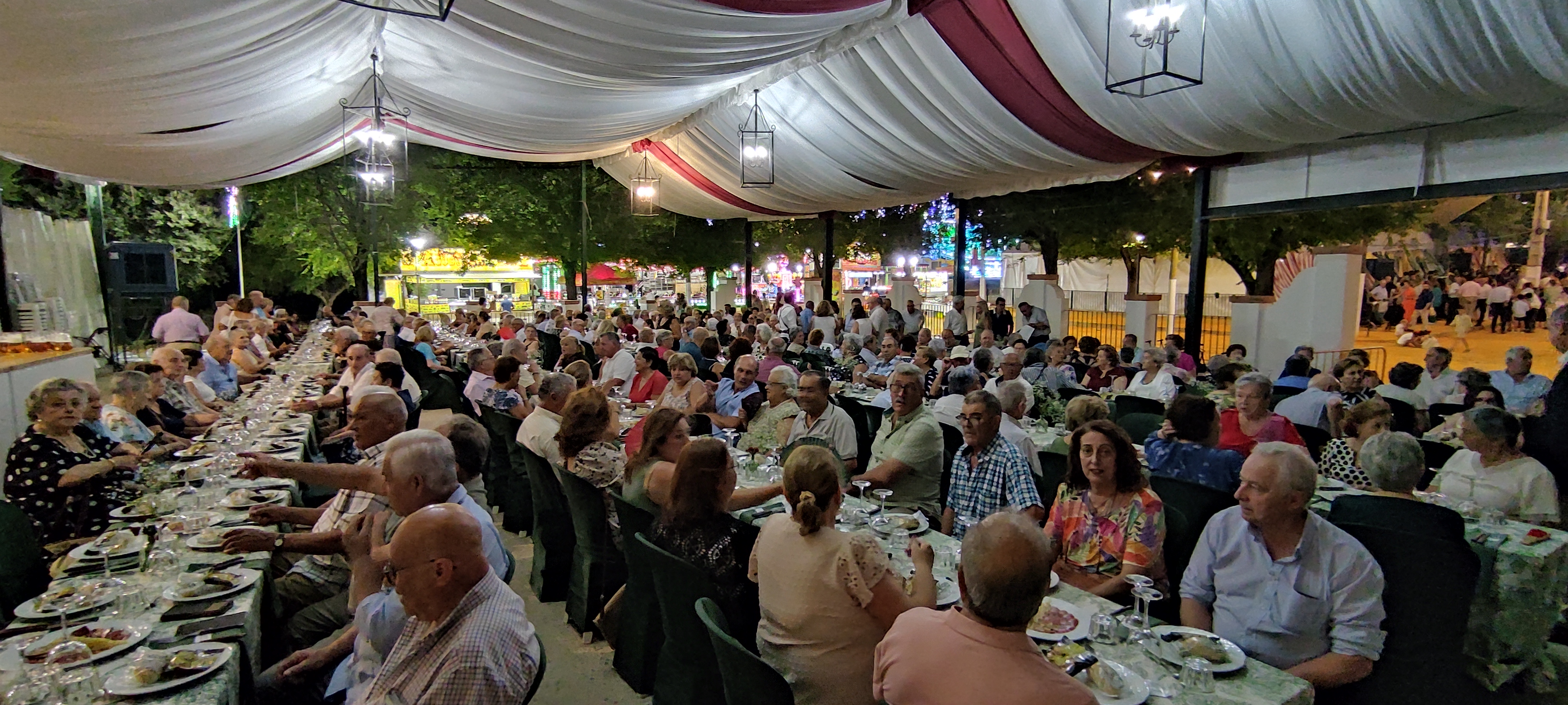La gran protagonista de la noche fue la cena del pescaíto, dedicada a nuestros mayores, que una vez más se convirtieron en el alma de la celebración. Cerca de 300 personas de la tercera edad compartieron mesa en la Caseta Municipal en un acto cargado de afecto y reconocimiento, organizado por el Ayuntamiento como homenaje a quienes han contribuido con su esfuerzo a construir el pueblo que somos hoy.