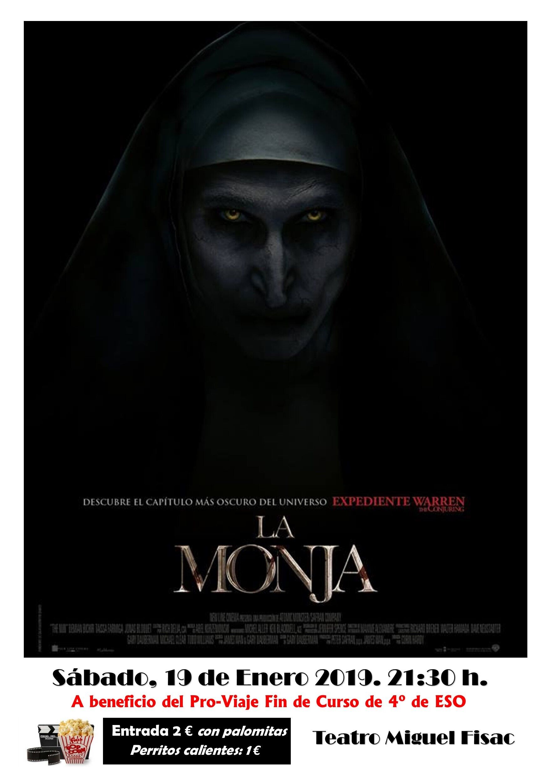 A beneficio del viaje de fin de curso del alumnado de 4º de ESO, los más atrevidos tienen una cita el sábado por la noche, a partir de las 21:30h, con La Monja. Un nuevo episodio de la saga Expediente Warren, en el que una monja de clausura se quita la vida en un convento de Rumanía.