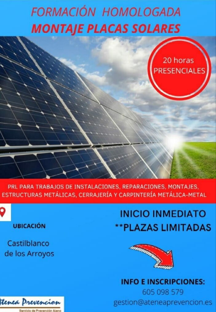 La empresa Atenea Prevención impartirá un curso homologado sobre montaje de placas solares en Castilblanco.