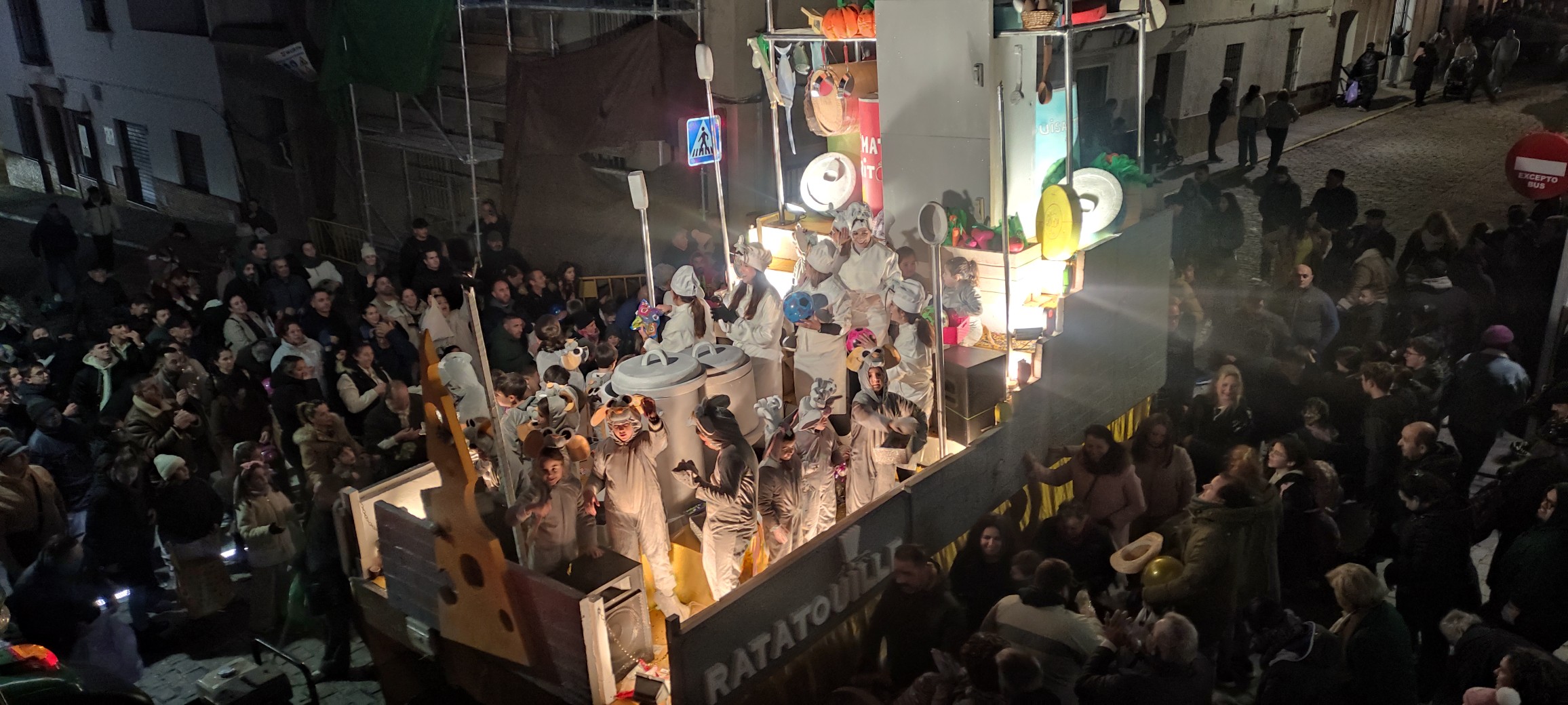 La primera de las carrozas temáticas fue Ratatouille, a cargo, un año más, de la Hermandad de San Benito, anunciando la llegada del Rey Gaspar, representado por María Palomo. A continuación, la segunda carroza temática, dedicada a Mary Poppins, y cerrando el cortejo, el Rey Baltasar, representado por Isabel Rodríguez.