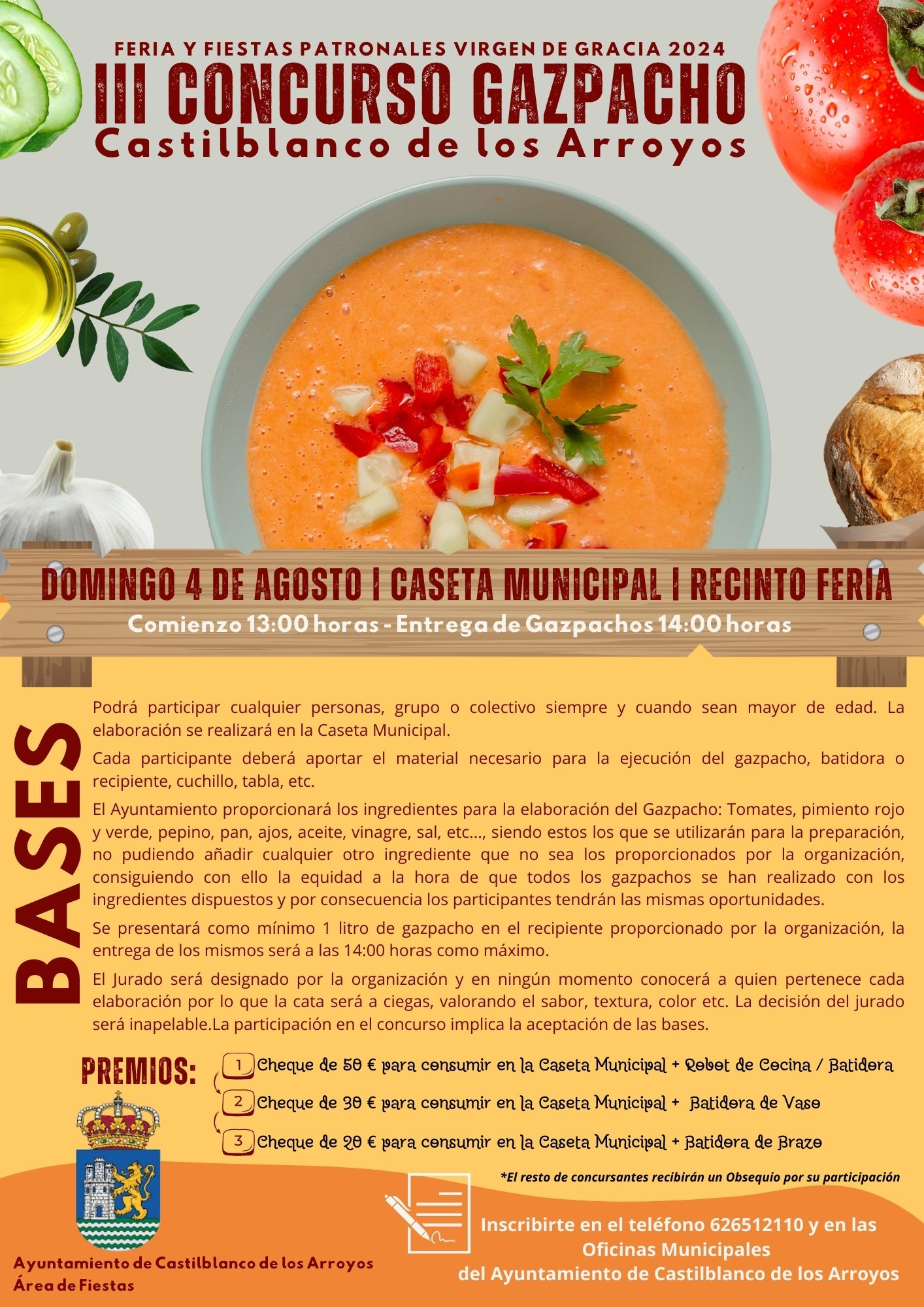 La actividad regresará a la Caseta Municipal a partir de las 13:00 h., con la celebración de una nueva edición del Concurso de Gazpacho que contará con un total de 6 participantes y cuyos platos se podrán degustar, tras darse a conocer el fallo del jurado.