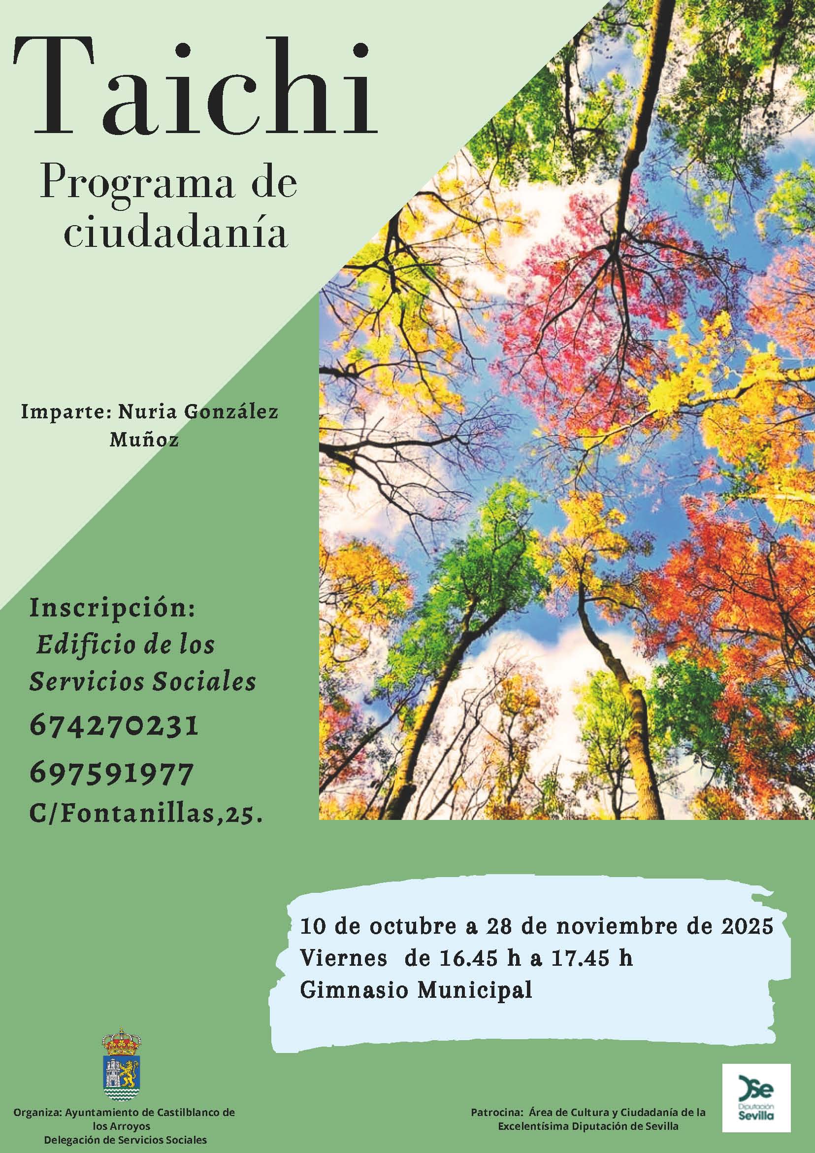 La Concejalía de Bienestar Social abre también el curso 2025/26, dando a conocer las fechas del primer curso de su oferta formativa con la vuelta de una de las actividades más valoradas por la ciudadanía: el taller de Taichí, incluido en el Programa de Ciudadanía.