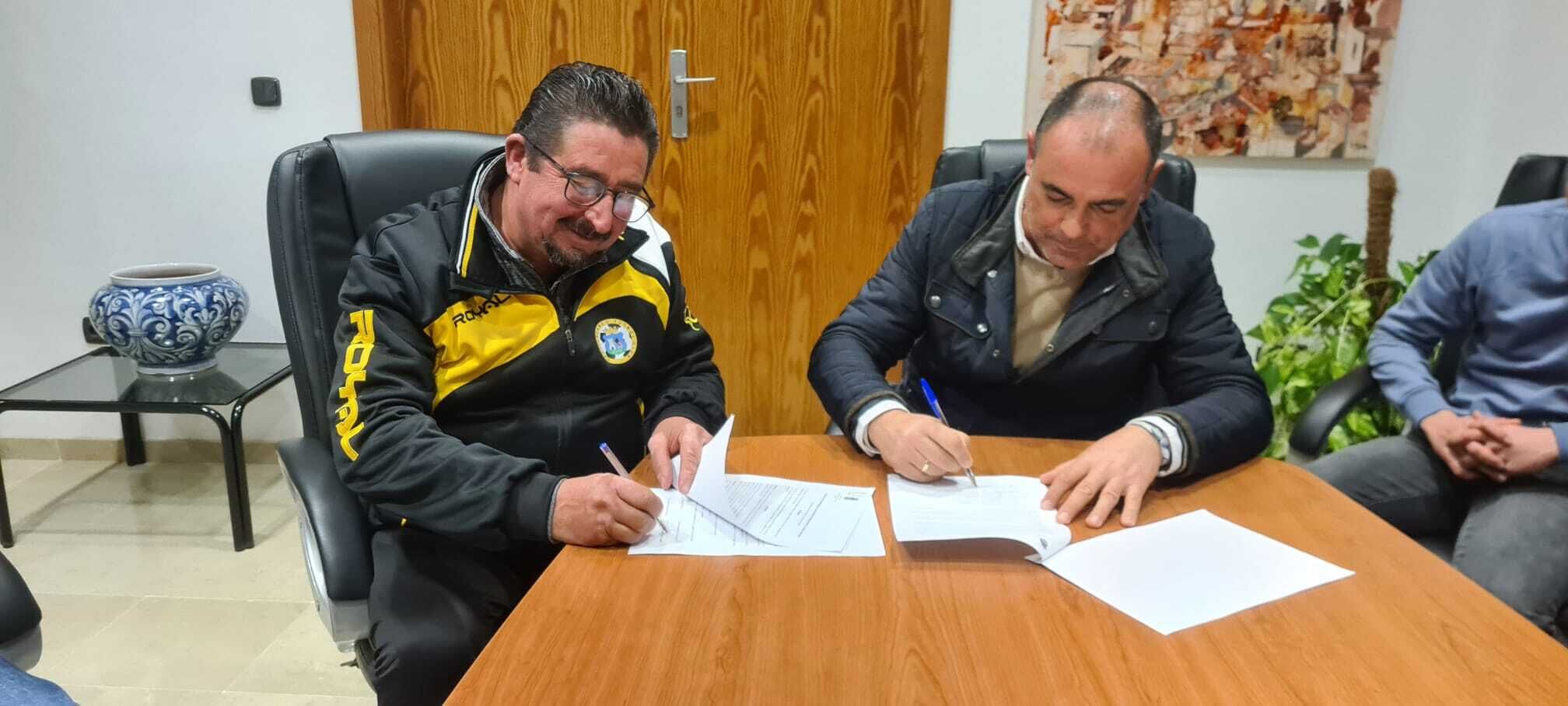 Un documento que, en la tarde de este martes, el Alcalde y el Presidente del Club, Juan Miguel Chicharro, han firmado, y en el que se establecen los términos de colaboración entre ambas entidades, con la cesión por parte del Ayuntamiento al Club de las instalaciones deportivas municipales, así como una aportación económica de 18.000€ para la promoción y fomento del fútbol local.