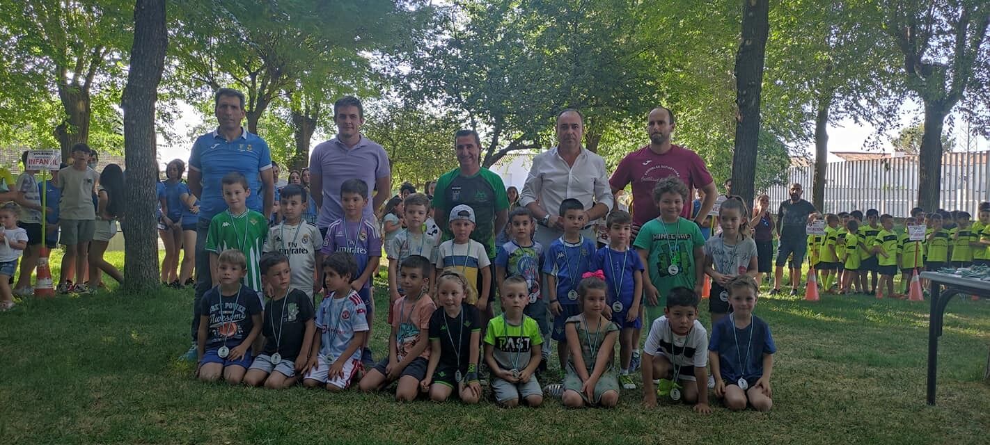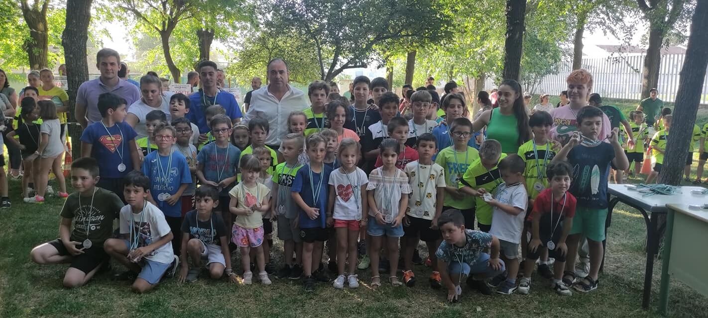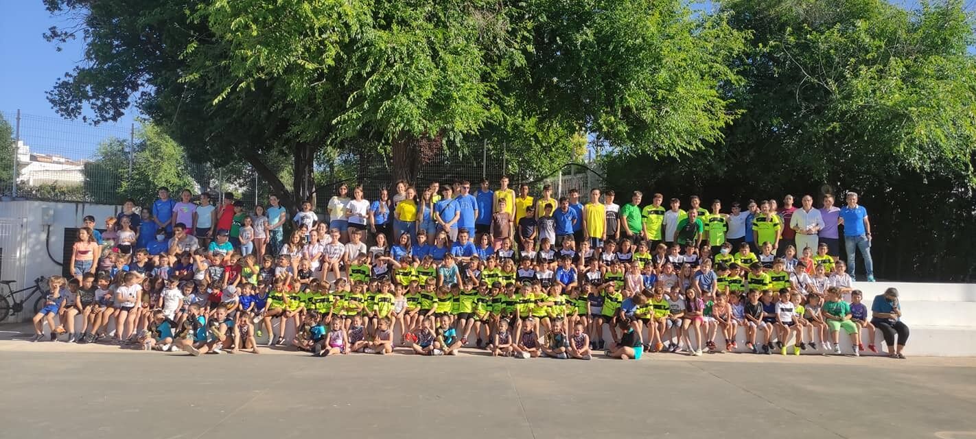 Más de 300 niños y niñas, pertenecientes a las Escuelas de Fútbol-7, Baloncesto, Voleibol, Pádel, Atletismo, Taekwondo y Gimnasia Rítmica que recibieron en forma de medalla un reconocimiento al trabajo realizado a lo largo de estos meses, de manos del Alcalde y el Concejal de Deportes, Alejandro Romero.