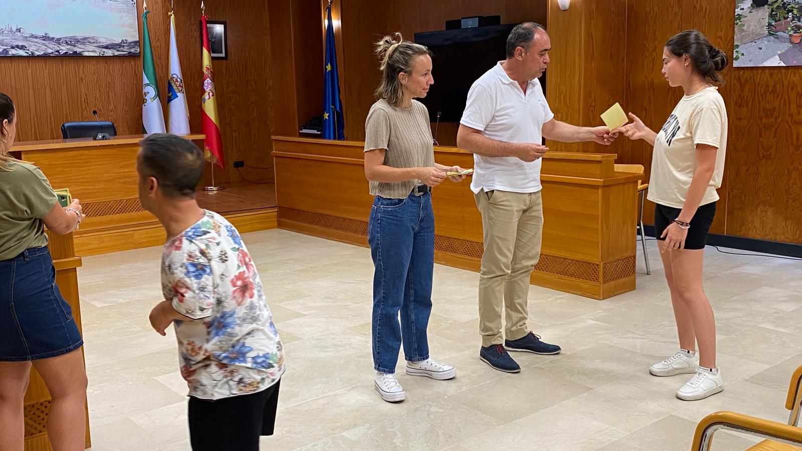 En la tarde de este lunes, el Alcalde, José Manuel Carballar, acompañado por la concejala de Juventud, Cristina Ruiz, y el equipo técnico del Área de Juventud, ha procedido a la entrega de las Ayudas al Transporte para jóvenes estudiantes, una iniciativa que cumple ya su cuarta edición consecutiva.