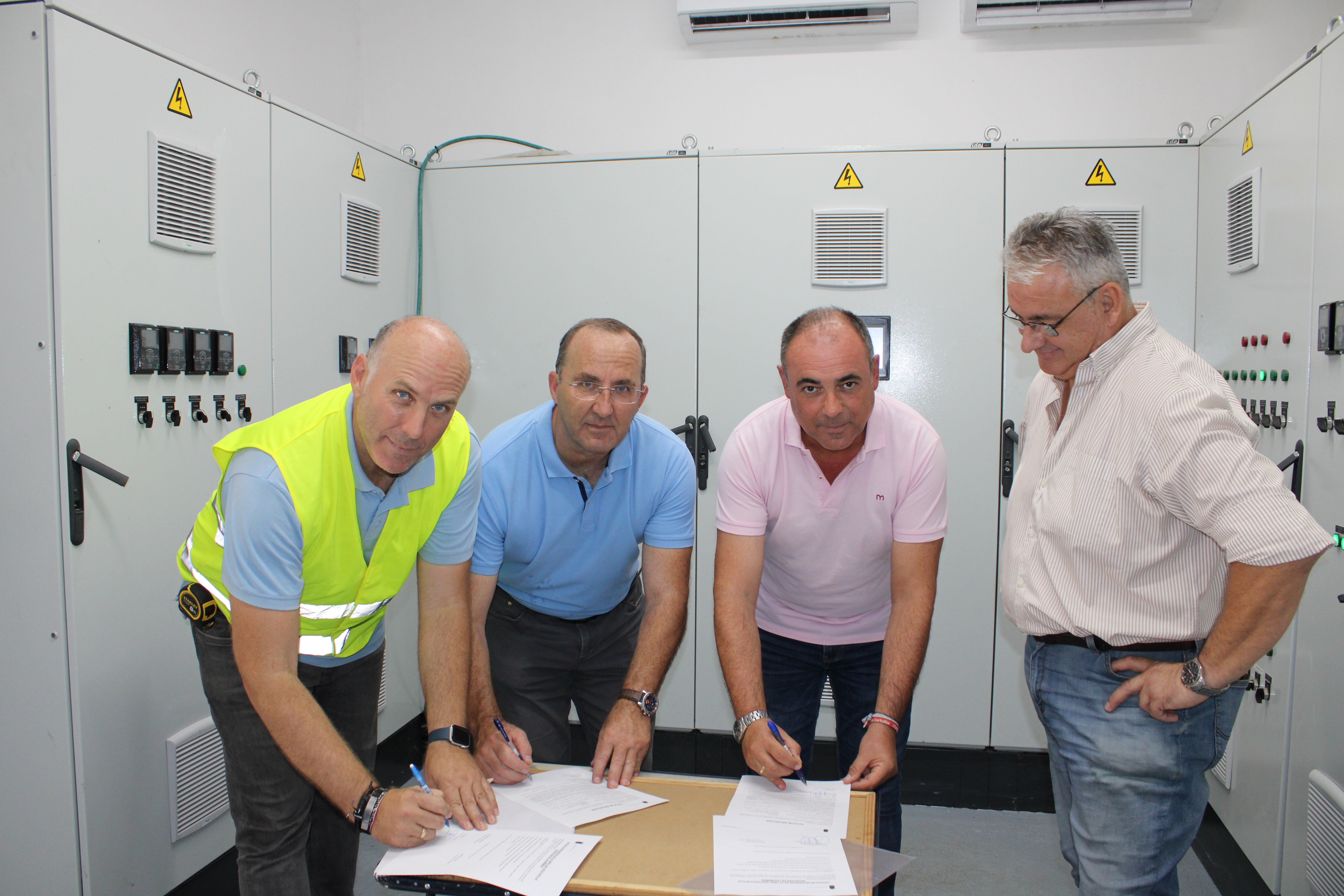 En la mañana de este miércoles, el Alcalde, acompañado del Concejal de Obras y Servicios, Fernando López, técnicos del Consorcio Provincial de Agua y de la empresa adjudicataria del proyecto, Dinotec SL., ha procedido a la firma del acta de recepción de las obras de la nueva depuradora de agua potable que entra en fase de pruebas.