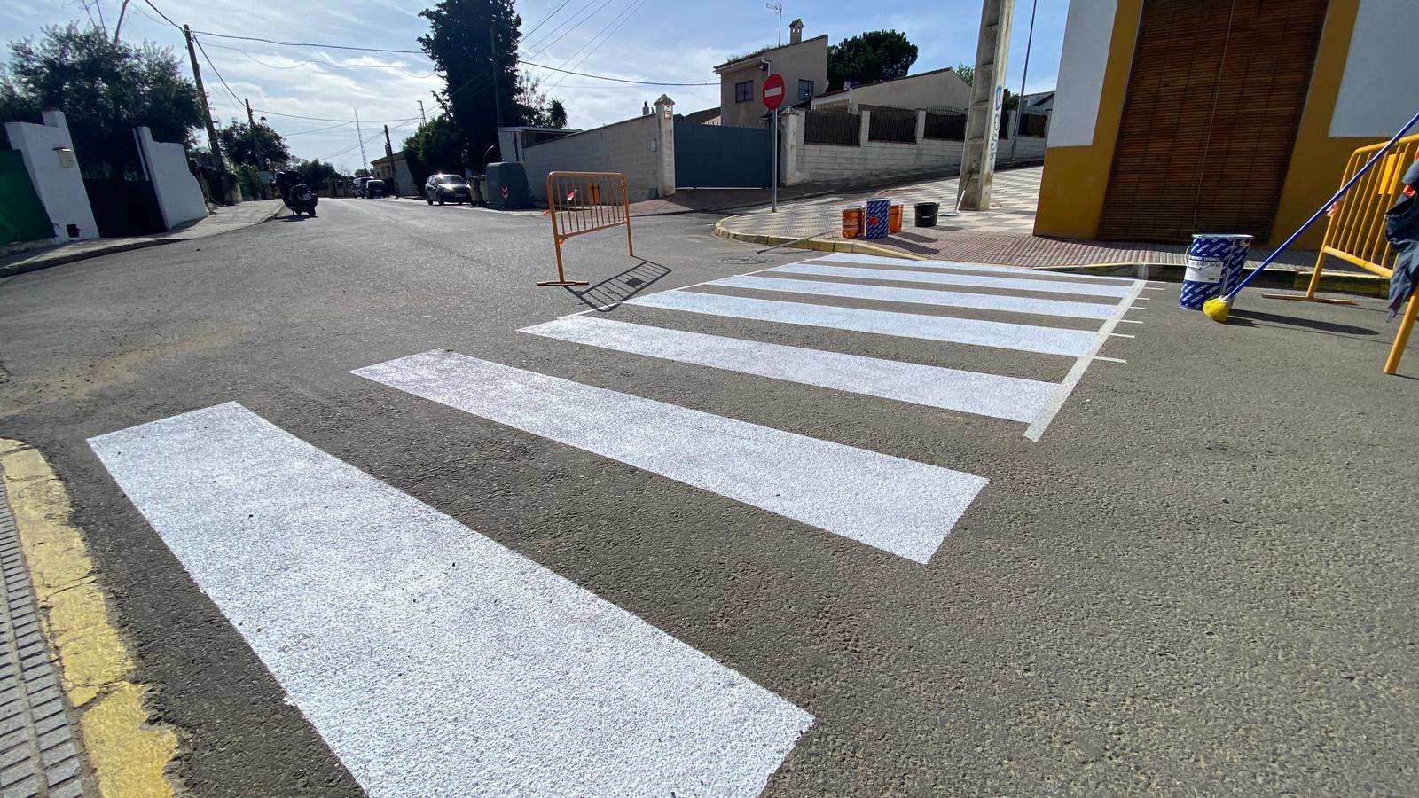 El Ayuntamiento sigue reforzando la seguridad vial con la instalación de tres nuevos pasos de peatones en puntos estratégicos del municipio: en la confluencia de Antonio Machado con el acceso a la calle Siete Arroyos, en Blas Infante con Pablo Picasso y en el Camino de Cantillana.