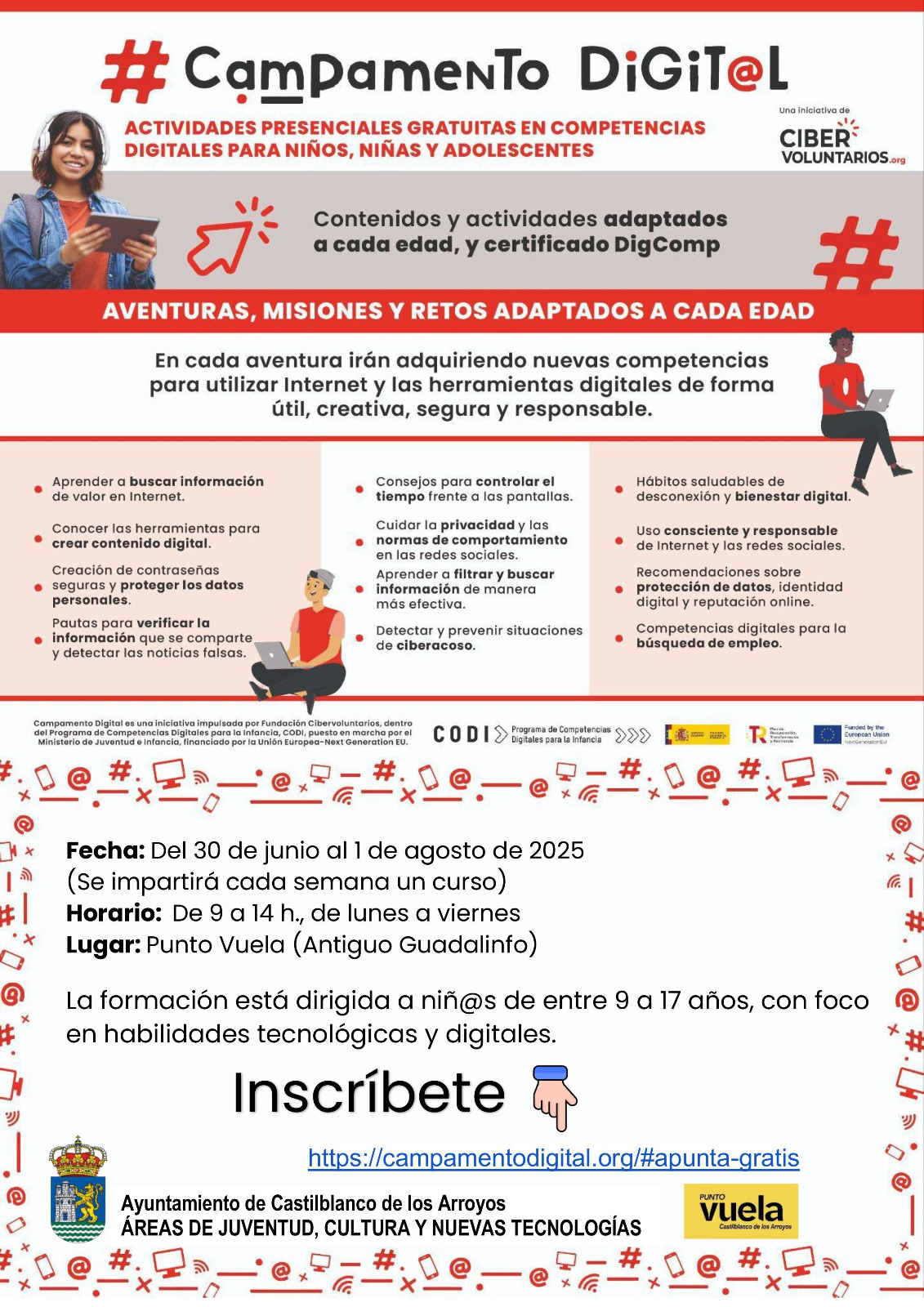 Durante todo el mes de julio, nuestro municipio será una de las sedes nacionales de esta iniciativa gratuita, dirigida a menores de 9 a 17 años, con el objetivo de formarles en el uso seguro, responsable y creativo de las nuevas tecnologías.