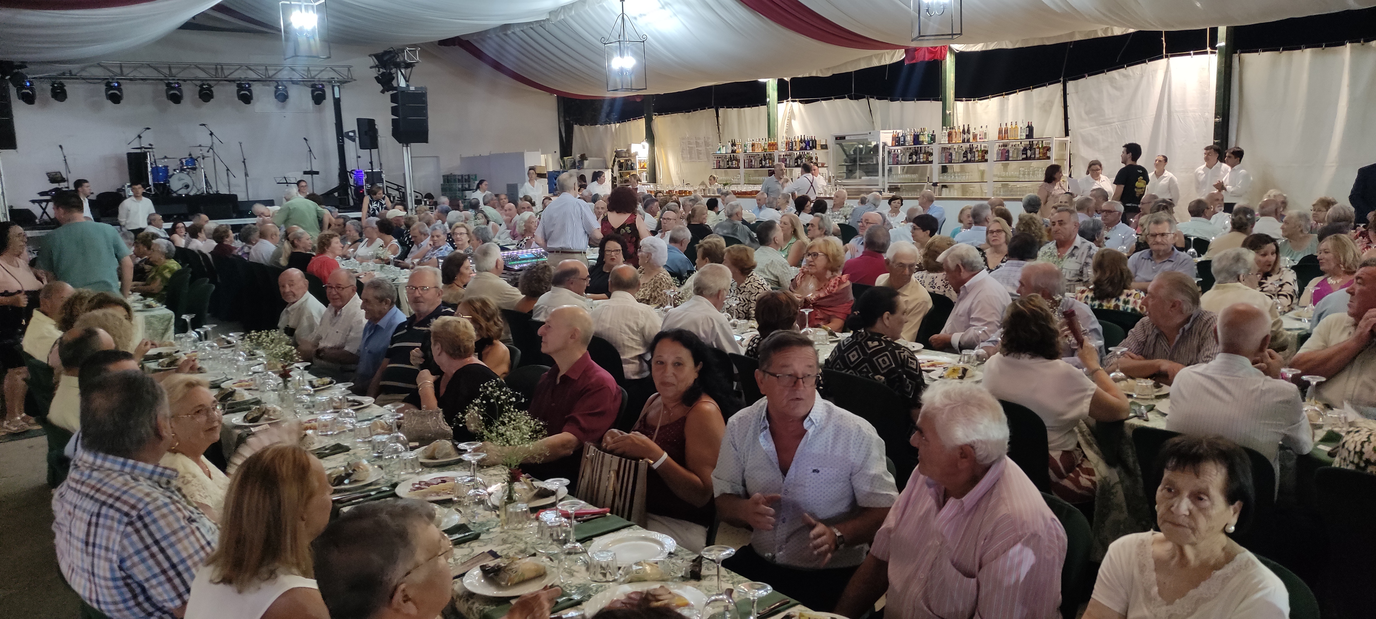 La gran protagonista de la noche fue la cena del pescaíto, dedicada a nuestros mayores, que una vez más se convirtieron en el alma de la celebración. Cerca de 300 personas de la tercera edad compartieron mesa en la Caseta Municipal en un acto cargado de afecto y reconocimiento, organizado por el Ayuntamiento como homenaje a quienes han contribuido con su esfuerzo a construir el pueblo que somos hoy.