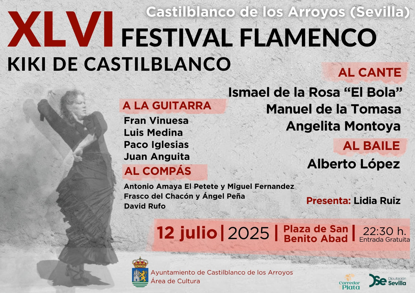 Otra cita imprescindible será el XLVI Festival Flamenco “Kiki de Castilblanco”, que tendrá lugar el próximo 12 de julio a las 22:30 h en la Plaza San Benito Abad.
