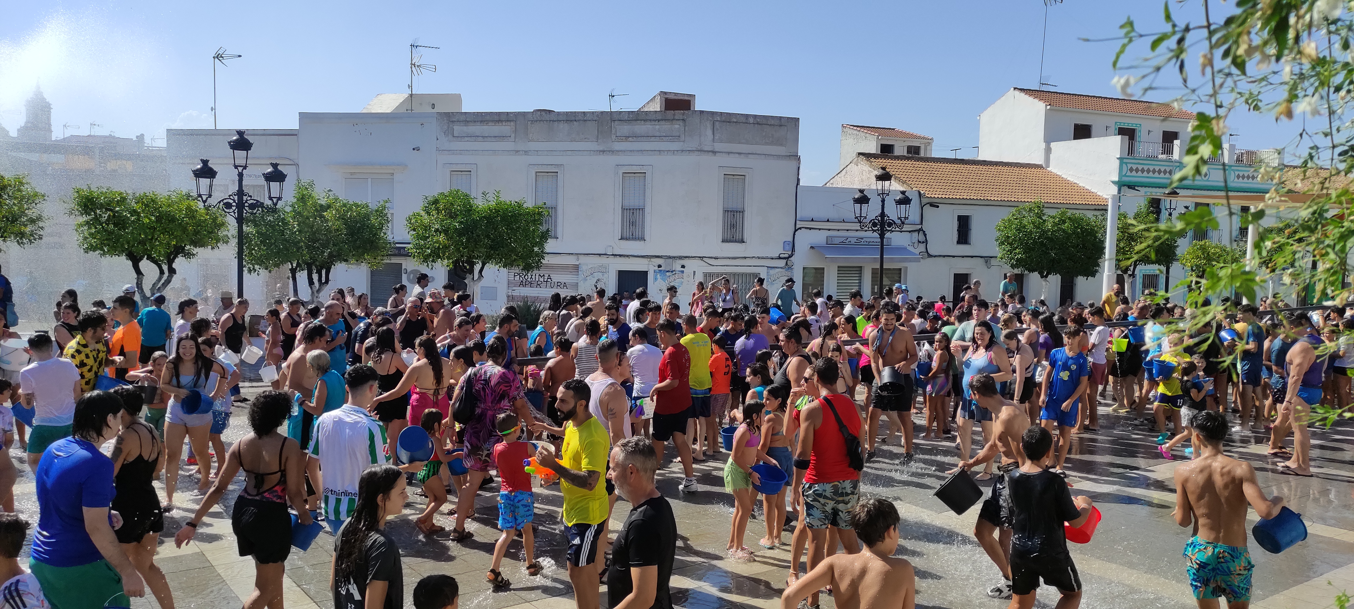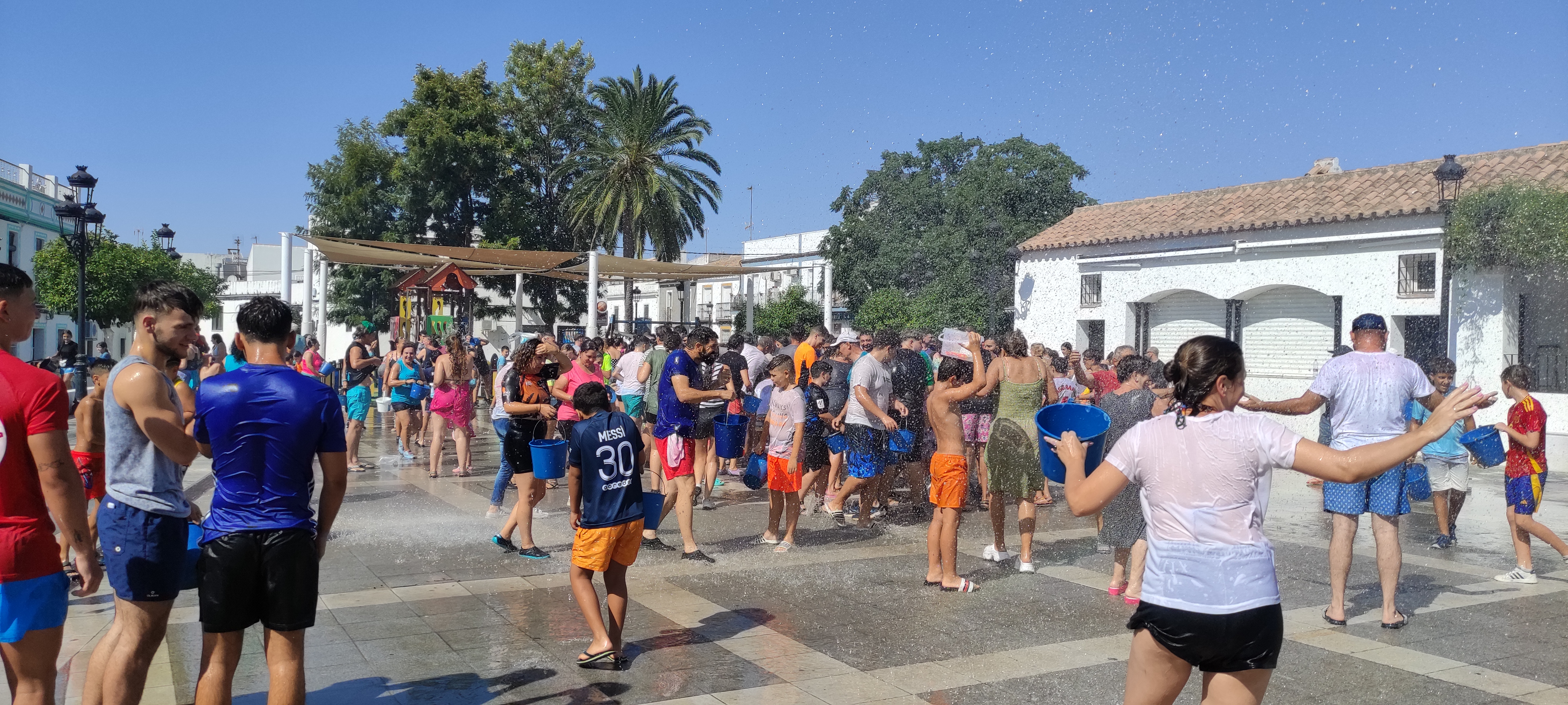 Durante aproximadamente una hora, la Plaza se convirtió en un auténtico campo de batalla donde el calor dejó de ser un problema, dando nuestro pueblo la bienvenida simbólica a la Feria 2025, que arrancaba oficialmente horas más tarde con el encendido del alumbrado.