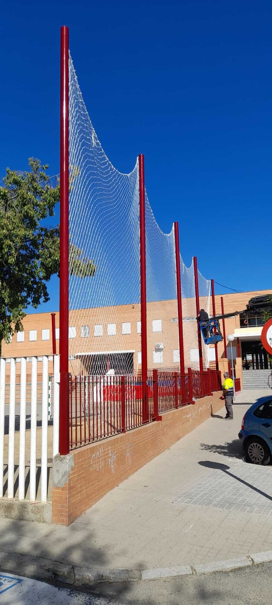 La Concejalía de Obras y Servicios en coordinación con la dirección del CEIP Miguel de Cervantes ha procedido también esta semana a la sustitución de la red de protección que bordea la zona lateral del patio del CEIP Miguel de Cervantes.