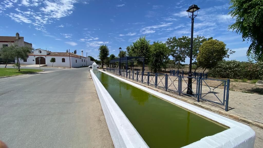 Las tareas de mejora y reacondicionamiento de los elementos arquitectónicos del casco urbano han llegado esta semana a los dos Pilares, con el repintado de ambos abrevaderos.