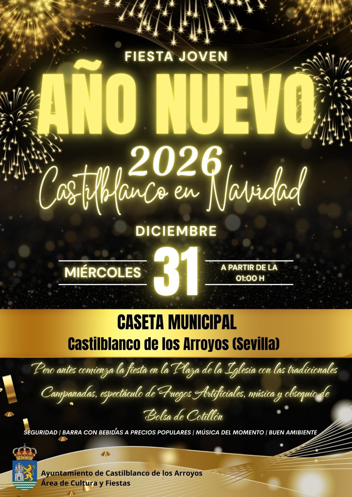 El Ayuntamiento invita a todos los vecinos y vecinas a despedir el año 2025 y dar la bienvenida al 2026 en la Plaza de la Iglesia, donde se celebrarán, como es tradición, las campanadas de Fin de Año.