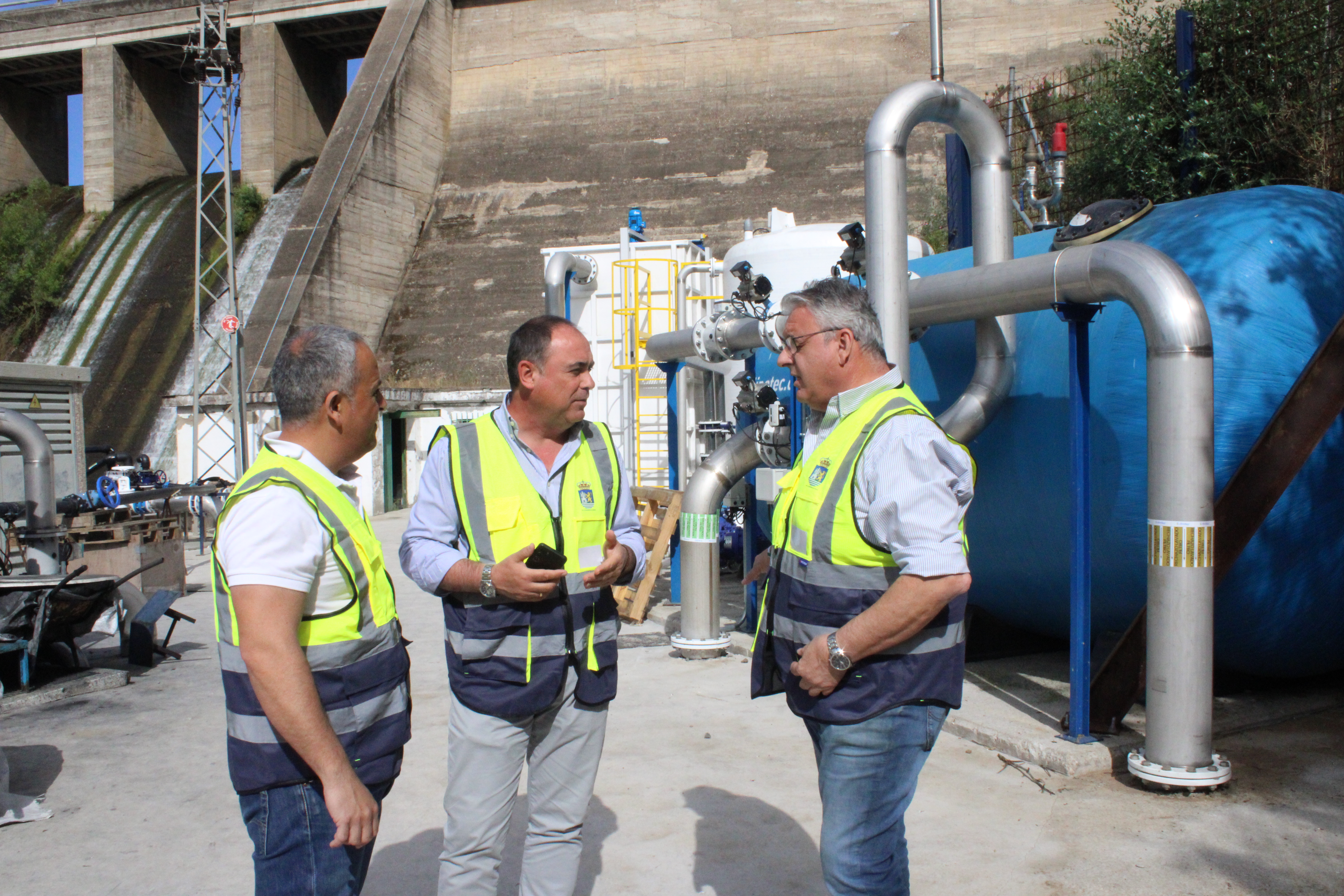 Tras las pruebas de funcionamiento realizadas esta semana en la nueva depuradora de agua potable, el Alcalde, José Manuel Carballar, acompañado de los Concejales Fernando López y Juan Antonio Comesaña y los técnicos municipales han visitado este jueves la planta del Pantano de Los Molinos para comprobar las obras de instalación de la nueva depuradora, en su recta final, con el 95% de los trabajos ya ejecutados, por lo que, según la previsión, entrará en funcionamiento antes del verano.