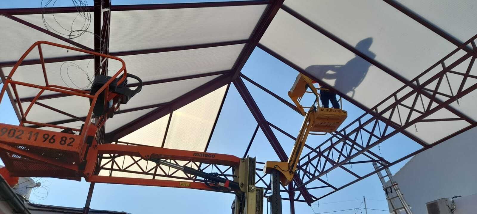 Unas obras de mejora que han comenzado en estos días y que consistirán en la sustitución de la cubierta del Mercado, en muy mal estado de conservación, debido a su antigüedad, con importantes fisuras en los panales de la estructura.