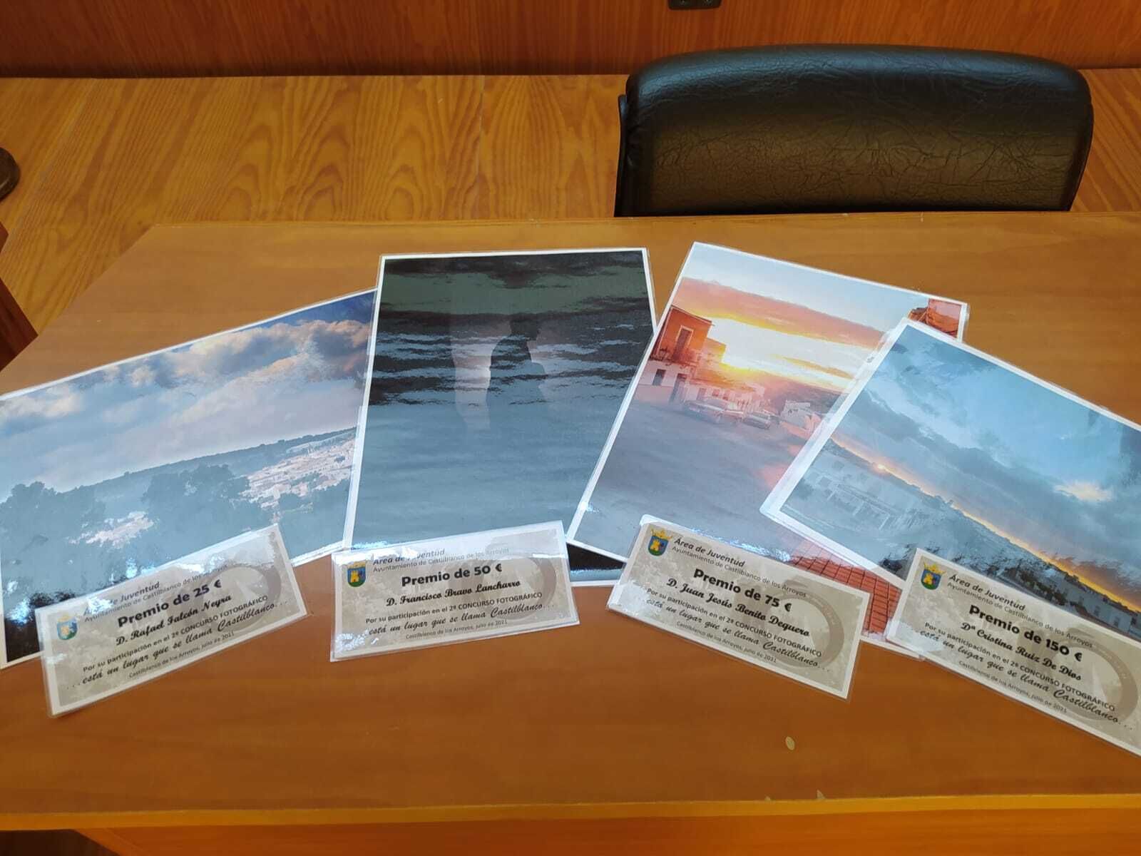 Cuatro cheques por valor de 150€, 75€, 50€ y 25€ que en esta ocasión han recibido Cristina Ruiz de Dios, con su instantánea Plaza Amarilla elegida como primera opción y que no pudo asistir al acto por motivos laborales, Juan José Benito Dequero con Tranquilo Atardecer, quien ha recibido el segundo premio, junto a Francisco Bravo Lancharro con Nocturno Niebla como tercer premiado y Rafael Falcón Neyra, con la Luz de Castilblanco, en cuarta posición.