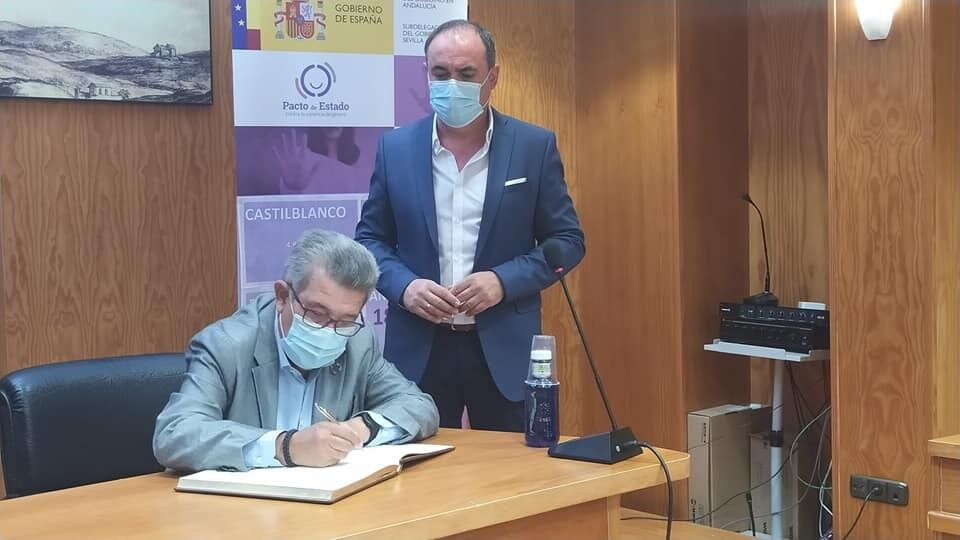 Este miércoles, el Subdelegado del Gobierno de España en Sevilla ha entregado al Alcalde, José Manuel Carballar, el Convenio VioGén. Un documento que se firmaba el pasado mes de diciembre mediante videoconferencia y al que el Ayuntamiento ha decidido adherirse para el seguimiento y control de los casos de violencia de género.