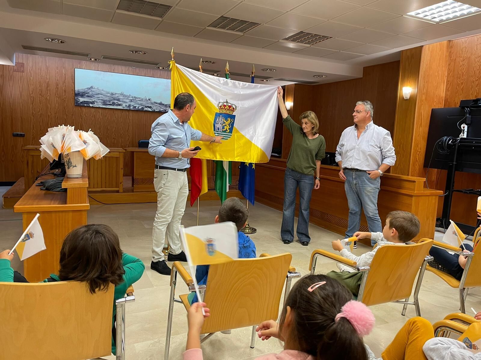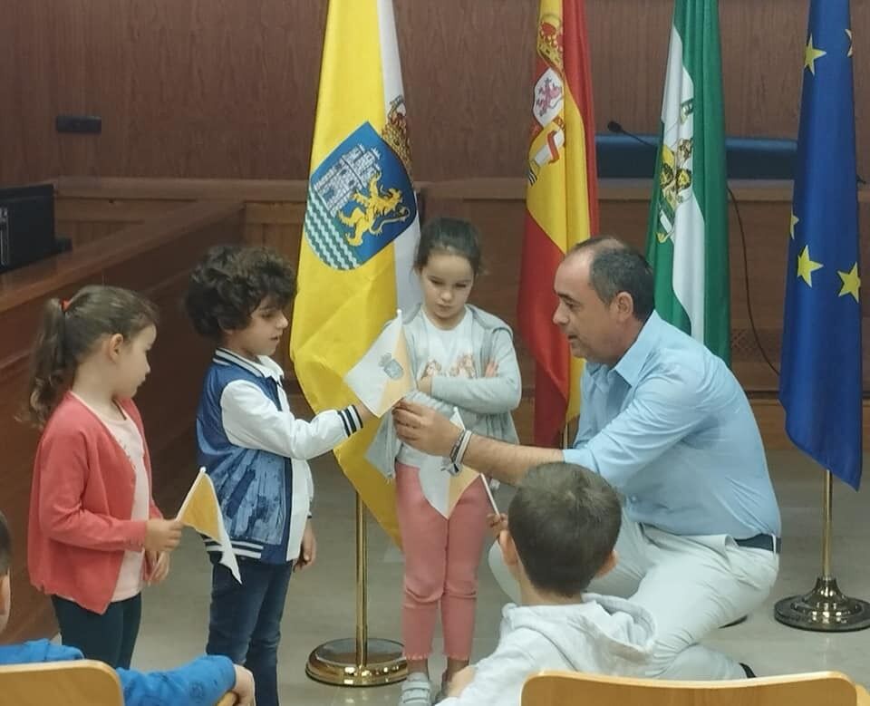 Conocer los colores y símbolos que nos identifican como pueblo. Con este objetivo, este jueves, los alumnos y alumnas pertenecientes al último curso de Infantil, han visitado el Ayuntamiento, donde han mantenido una entrevista con el Alcalde y los Concejales pertenecientes al Equipo de Gobierno.