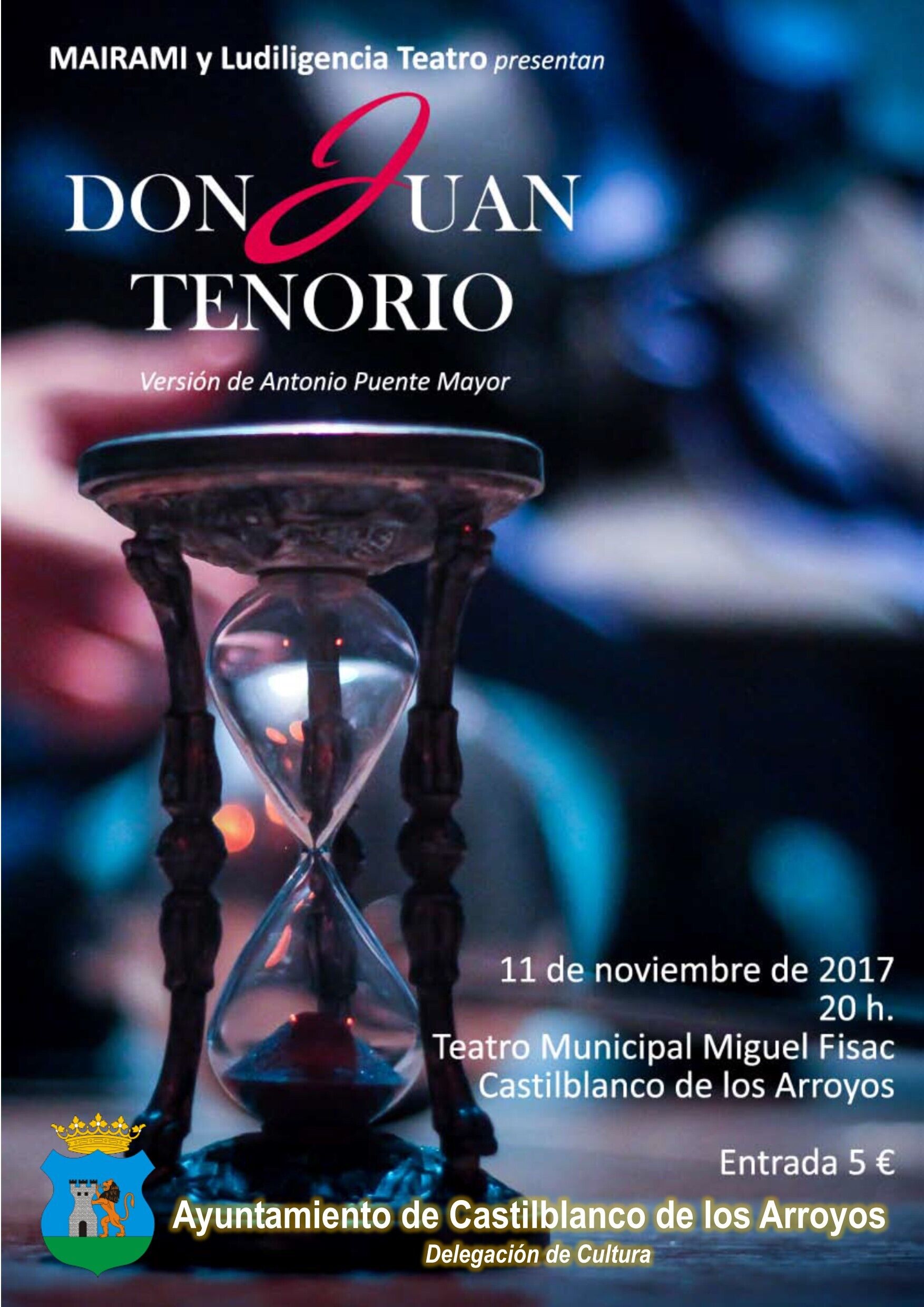 Venta de entradas en la taquilla del Teatro, minutos antes de que comience la función o en el Ayuntamiento.