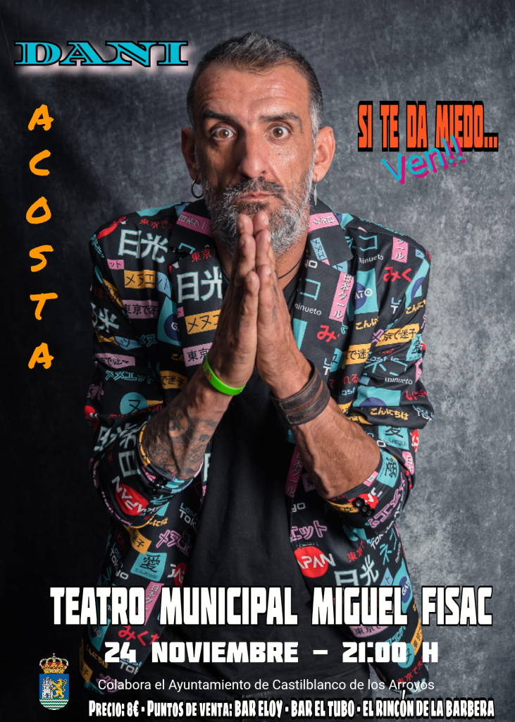 Tras su paso por los teatros de Sevilla y Madrid en las últimas semanas, el cómico y Monologuista Dani Acosta vuelve a Castilblanco.