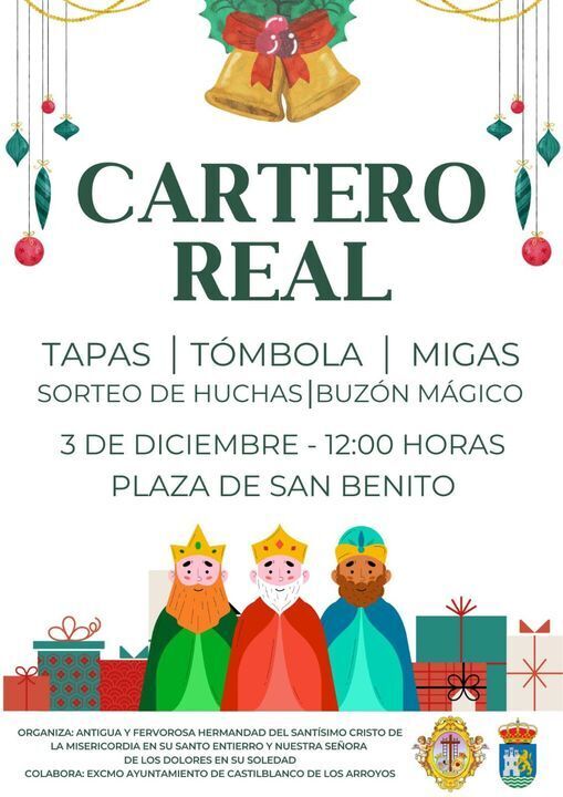 Desde la Hermandad del Stmo. Cristo de la Misericordia en su Santo Entierro y Ntra. Sra. de los Dolores en su Soledad se informa a todos los niños y niñas que este domingo, 3 de diciembre, el Cartero Real visitará Castilblanco para llevarse las cartas dirigidas a Sus Majestades de Oriente.