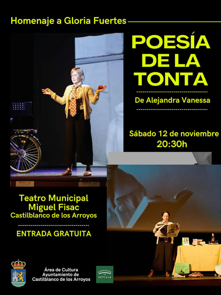 En esta ocasión será Alejandra Vanessa, quien, con su estilo de hacer teatro moderno, se convertirá en Gloria Fueres, rindiendo un homenaje a esta poetisa de la Generación del 50. Un auténtico espectáculo de adultos, en el que las imágenes proyectadas y las palabras en vivo trasladarán al público a un encuentro imaginario entre la Gloria Fuertes joven que comenzaba a escribir y la ya madura reconocida por su obra literaria a nivel internacional.
