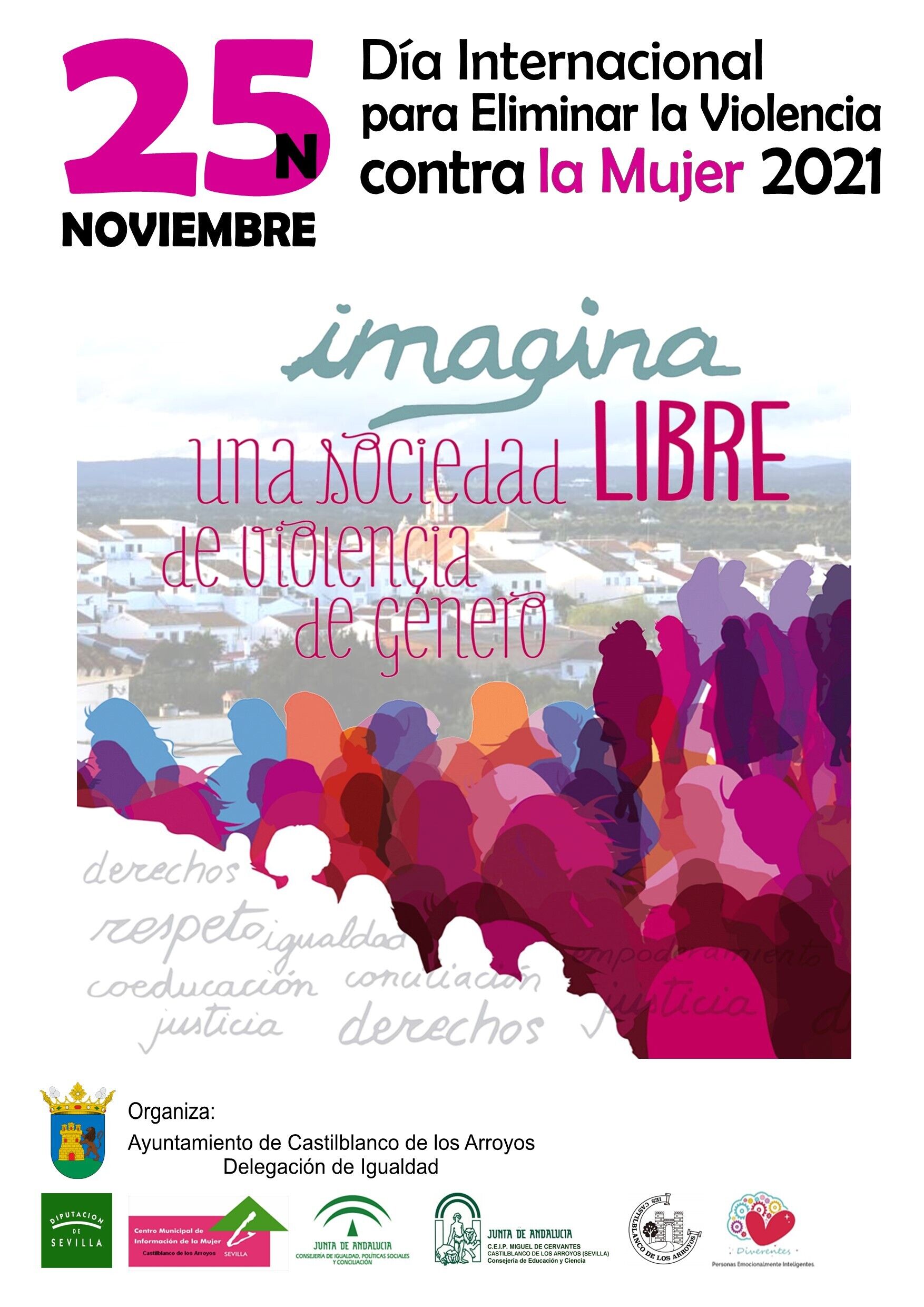 El Día contra la Violencia de Género, 25 de noviembre, habrá una concentración a las 11:00 horas en la puerta del Ayuntamiento durante la que se leerá a cargo de las asociaciones, colectivos y entidades locales de ámbito social, educativo y de la salud, el manifiesto contra esta lacra, este año bajo el lema Imagina una sociedad libre de violencia de género.