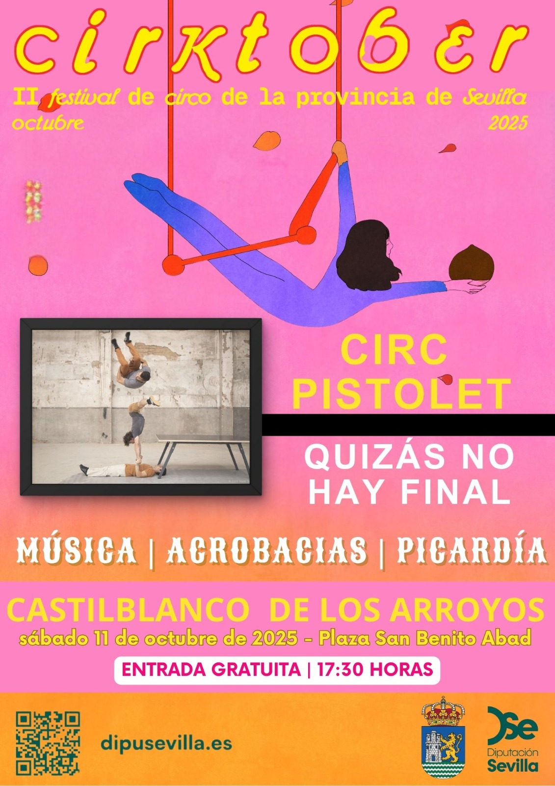 Con esta programación, Castilblanco se suma a CIRKTOBER, una iniciativa de la Diputación de Sevilla que lleva el arte del circo a distintos municipios de la provincia, fomentando la difusión cultural y ofreciendo una alternativa de ocio familiar y de calidad.