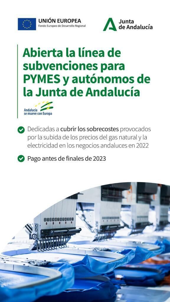 Desde la Concejalía de Empleo se informa de la nueva convocatoria de ayudas abierta por la Junta de Andalucía para aquellos autónomos y empresarios, cuyos negocios se vieron afectados durante el pasado año por las subidas de electricidad y gas natural.