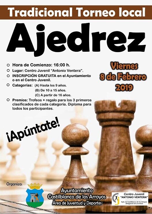 Un año más, el Centro Juvenil Antonio Ventera convoca una nueva edición del Torneo de Ajedrez. Destinado tanto a adultos como a niños, las partidas arrancarán a partir de las 17:00h.