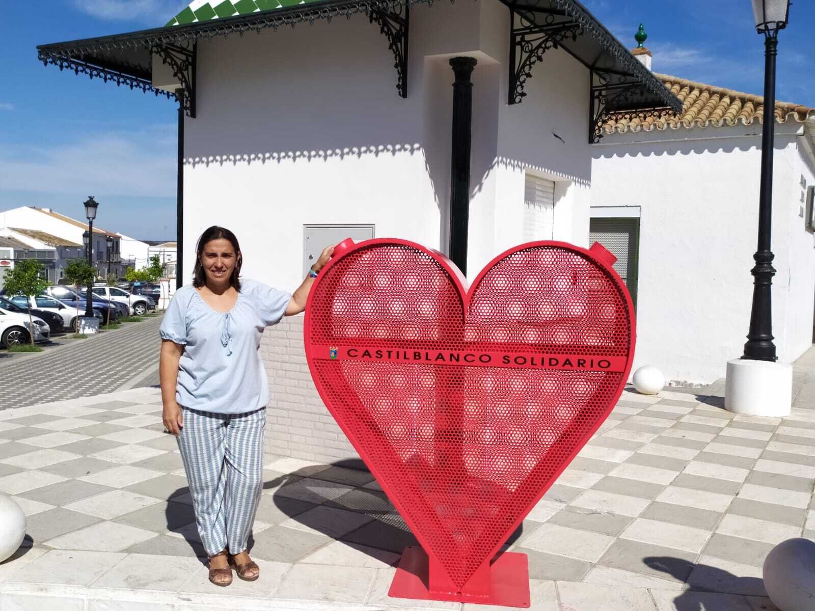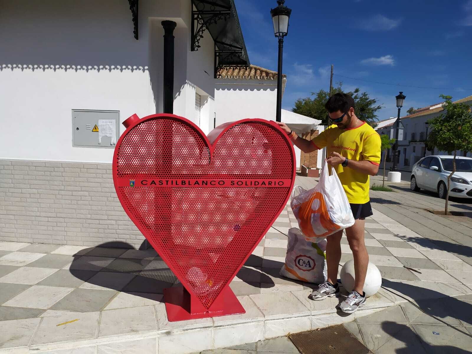 Castilblanco Solidario. Bajo este lema, el Ayuntamiento ha procedido en la mañana de este martes a la instalación de un contenedor con forma de corazón destinado a la recogida solidaria de tapones de plástico.