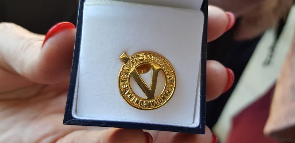 Su presidenta, Teresa González, junto a la Concejala de Bienestar, Coral Fernández y miembros de la Asociación fueron las personas encargadas de recoger la distinción en forma de un pin de oro.