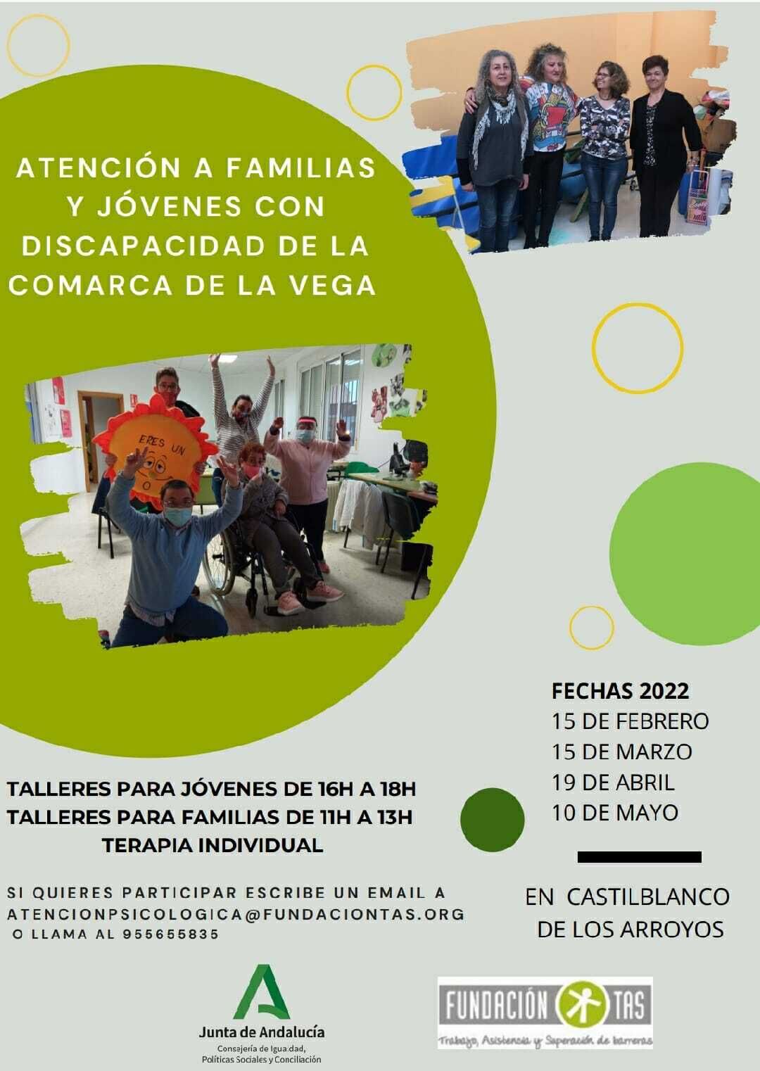 Desde la Fundación TAS se nos informa de la reanudación del programa de Atención Familiar, subvencionado por la Consejería de Igualdad, Políticas Sociales y Conciliación. Destinado tanto a los jóvenes con discapacidad como a sus familias, a través de este programa se realizarán talleres grupales y consultadas individuales, en las que se pondrá la salud de la psicología humana al servicio de las familias, las y los jóvenes usuarios de nuestros servicios, con la finalidad de impulsar y de enseñar herramientas para su desarrollo personal y para un mejor acompañamiento.