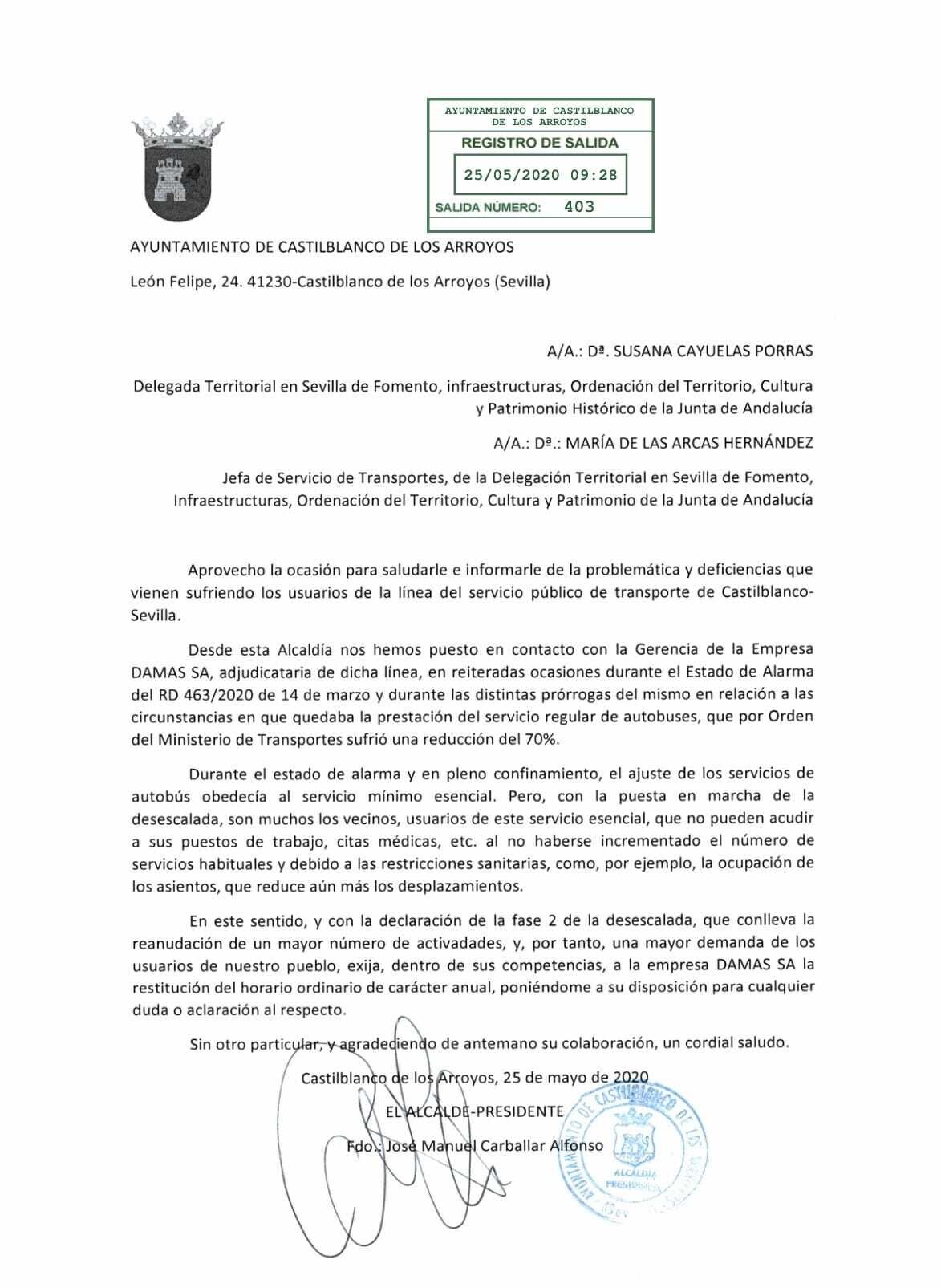 Tal y como se puede observar en el escrito adjunto, registrado ante la administración competente el pasado 25 de mayo, el Ayuntamiento solicitó formalmente la restitución del horario habitual, coincidiendo con la entrada de la FASE2. Petición que toma aún mayor fuerza esta semana, cuando nuestro pueblo entra en una nueva fase y la mayoría de los vecinos ya se han reincorporado a sus trabajos.