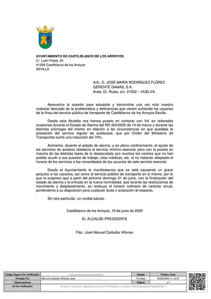 Es por ello que tal y como ha adelantado el Alcalde en sus redes sociales, si antes del día 1 de julio la empresa concesionaria del transporte público en Castilbanco no modifica los horarios, “exigiremos a la Junta de Andalucía que le abra un expediente sancionador por incumplimiento de las condiciones establecidas”.