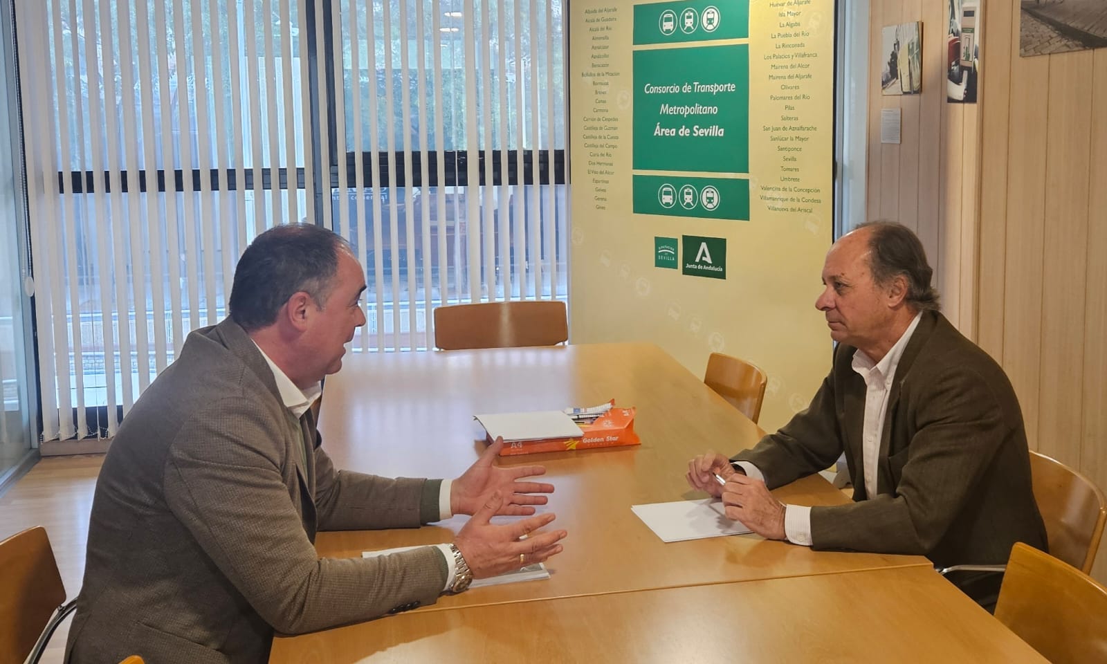 El Alcalde también ha mantenido esta semana una reunión con el Gerente del Consorcio de Transporte Metropolitano del Área de Sevilla, Juan Carlos García, para reclamar una respuesta a la solicitud del Ayuntamiento de adherirse al Consorcio de Transporte Metropolitano de Sevilla.