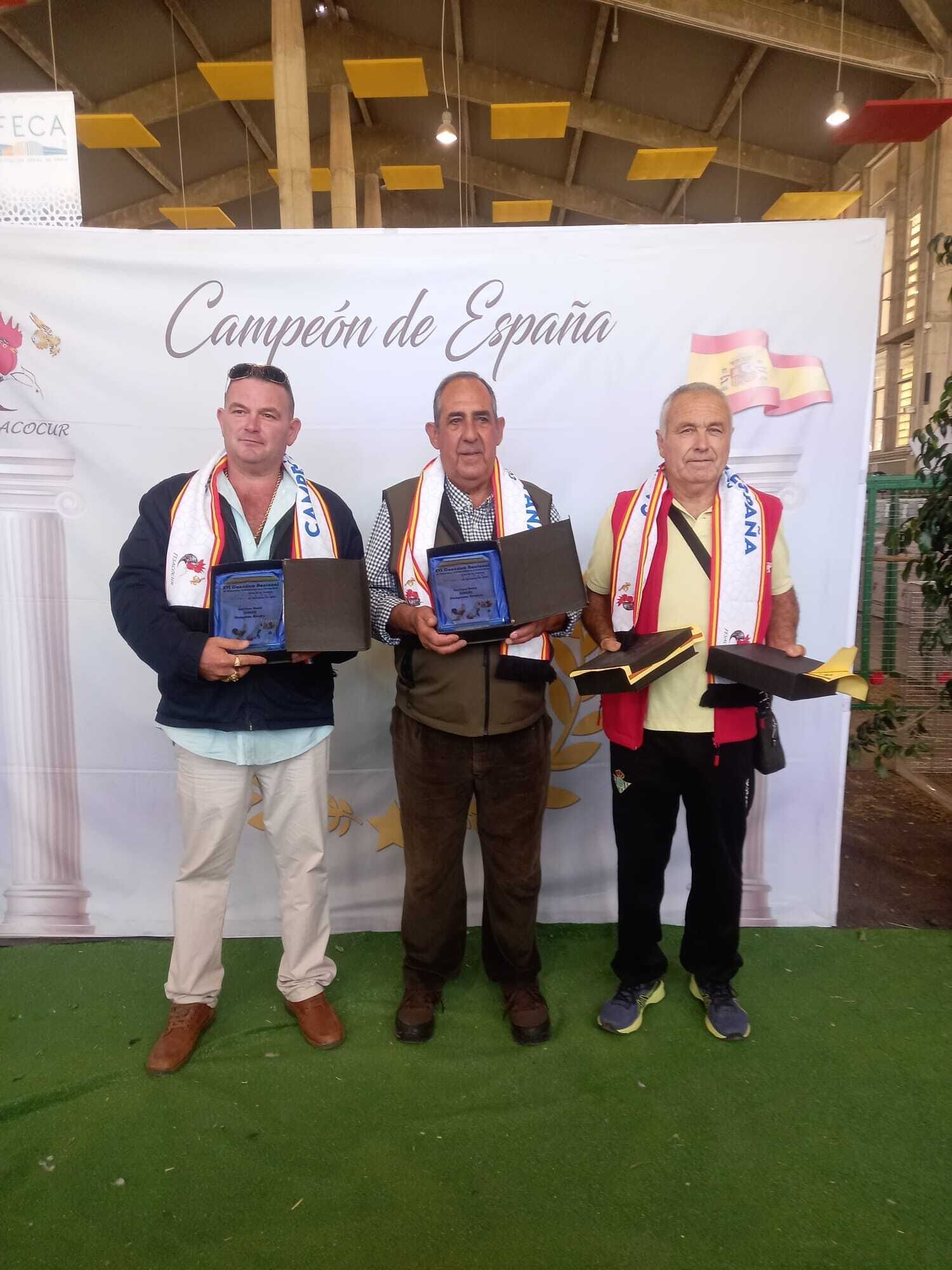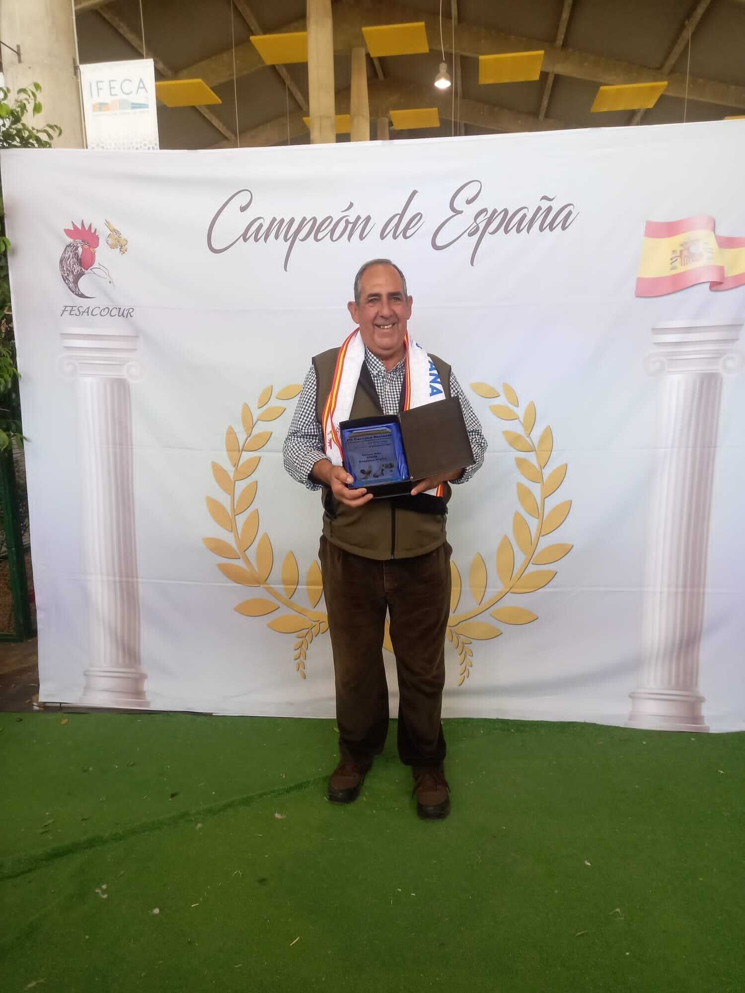 Nuestras felicitaciones a Antonio, quien ha participado en el concurso con un total de cuatro animales, convirtiéndose en Campeón Nacional, gracias a su gallina Marujita, que el pasado domingo conseguía el primer Premio, en la modalidad Gallina Sureña, del Concurso Nacional celebrado en Jerez de la Frontera, en el que participaron más de 2.500 animales de toda España, Francia, Alemania o Bélgica, entre otros paísaes.