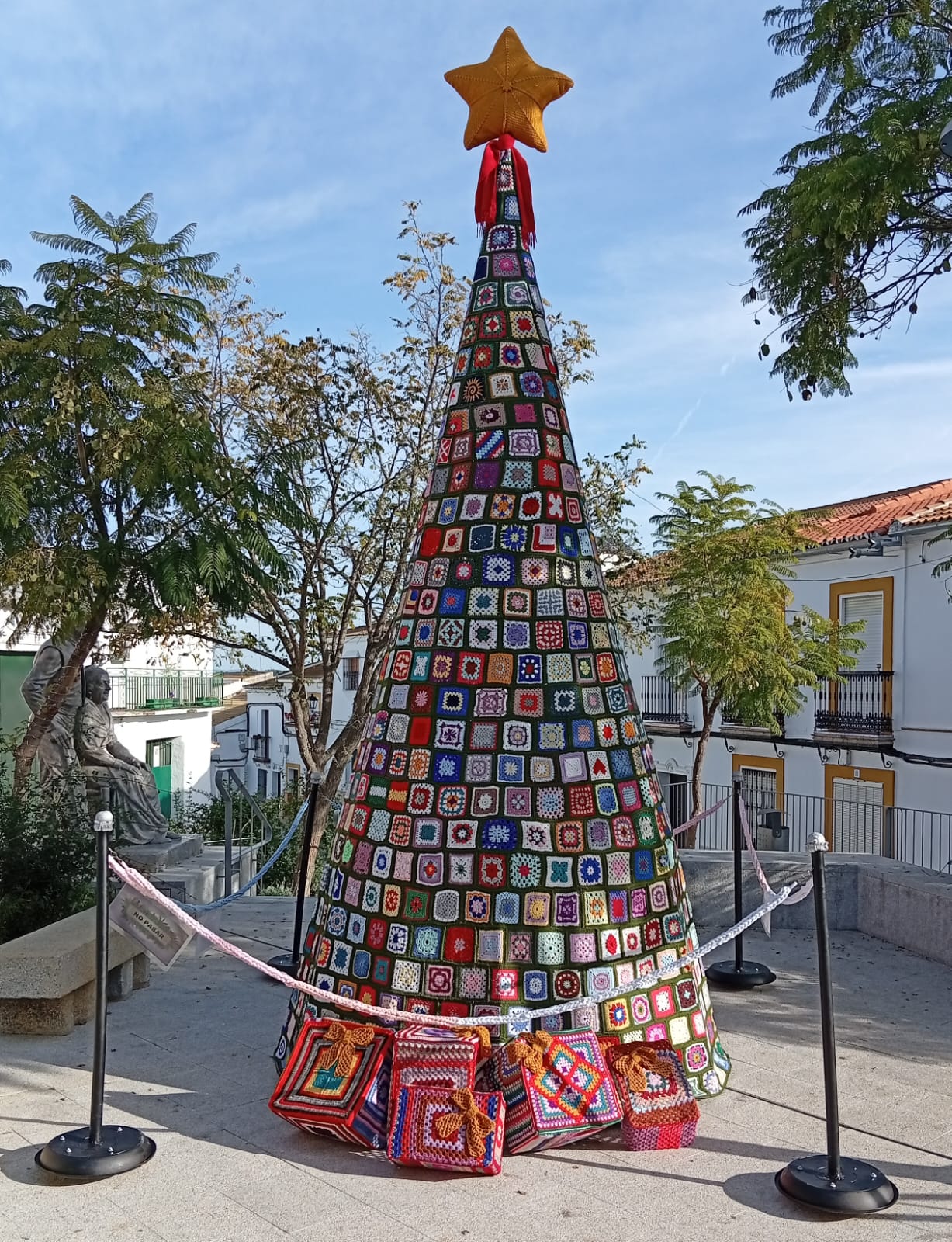 Se trata de un árbol de grandes dimensiones, tejido por las propias integrantes de la asociación, que ya el año pasado llenó este rincón del pueblo de espíritu navideño.