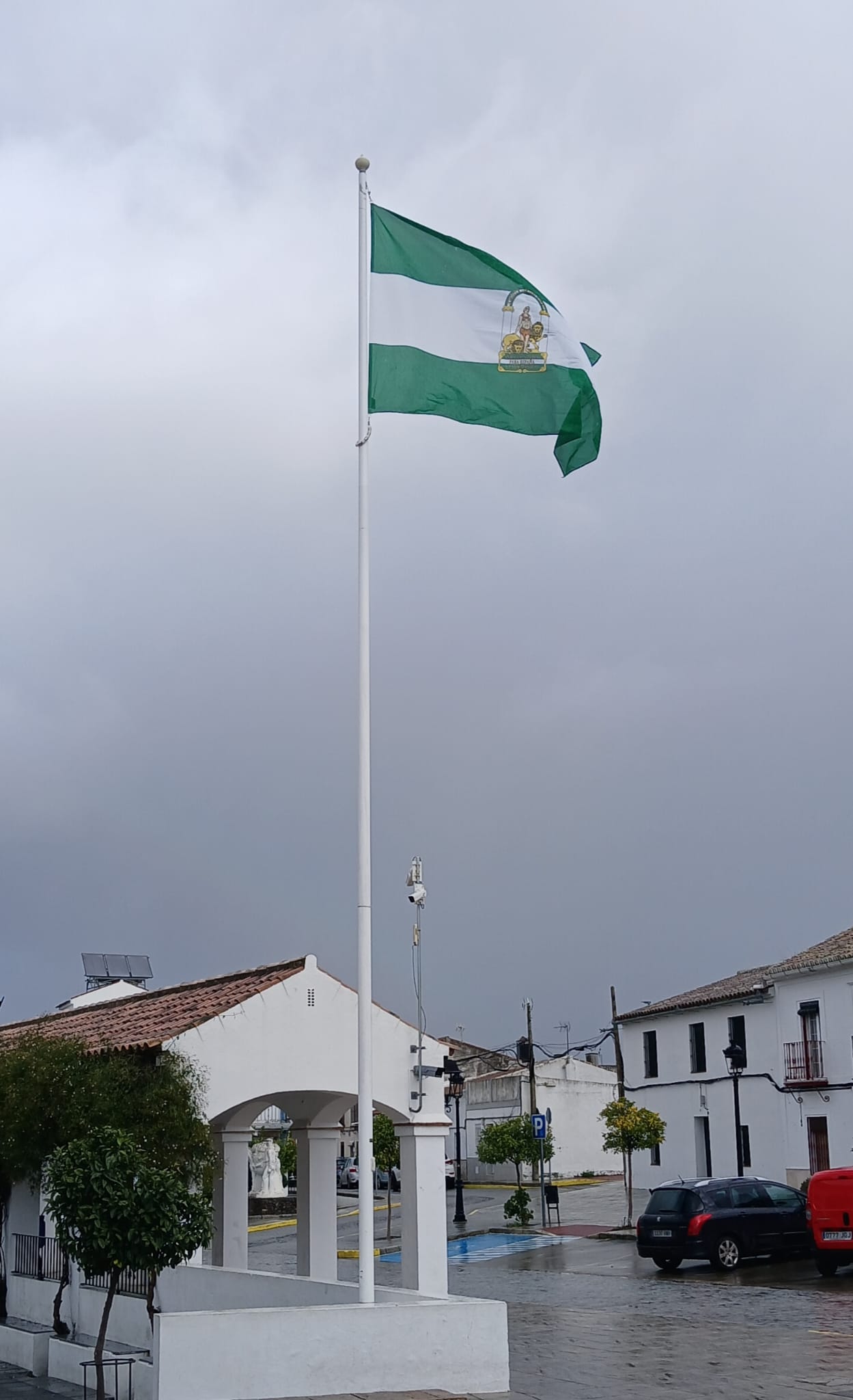 Febrero arranca con la bandera de Andalucía presidiendo la Plaza Amarilla. Desde este lunes, la bandera verde y blanca ondea en este espacio como símbolo de nuestra identidad, cultura y raíces andaluzas.