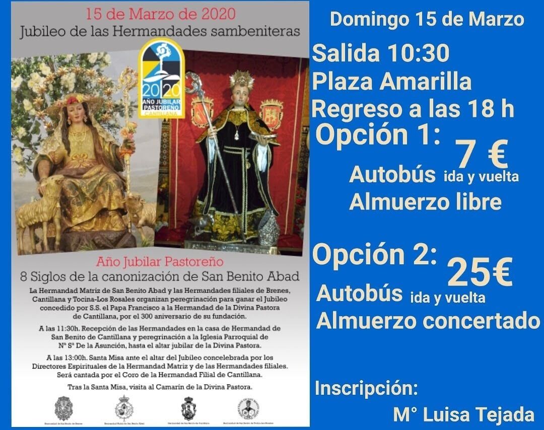 La Hermandad Matriz de San Benito Abad, junto a las filiales de Brenes, Cantillana y Tocina-Los Rosales, organiza una peregrinación para ganar el Jubileo ante la Divina Pastora de Cantillana, en su 300 aniversario fundacional.