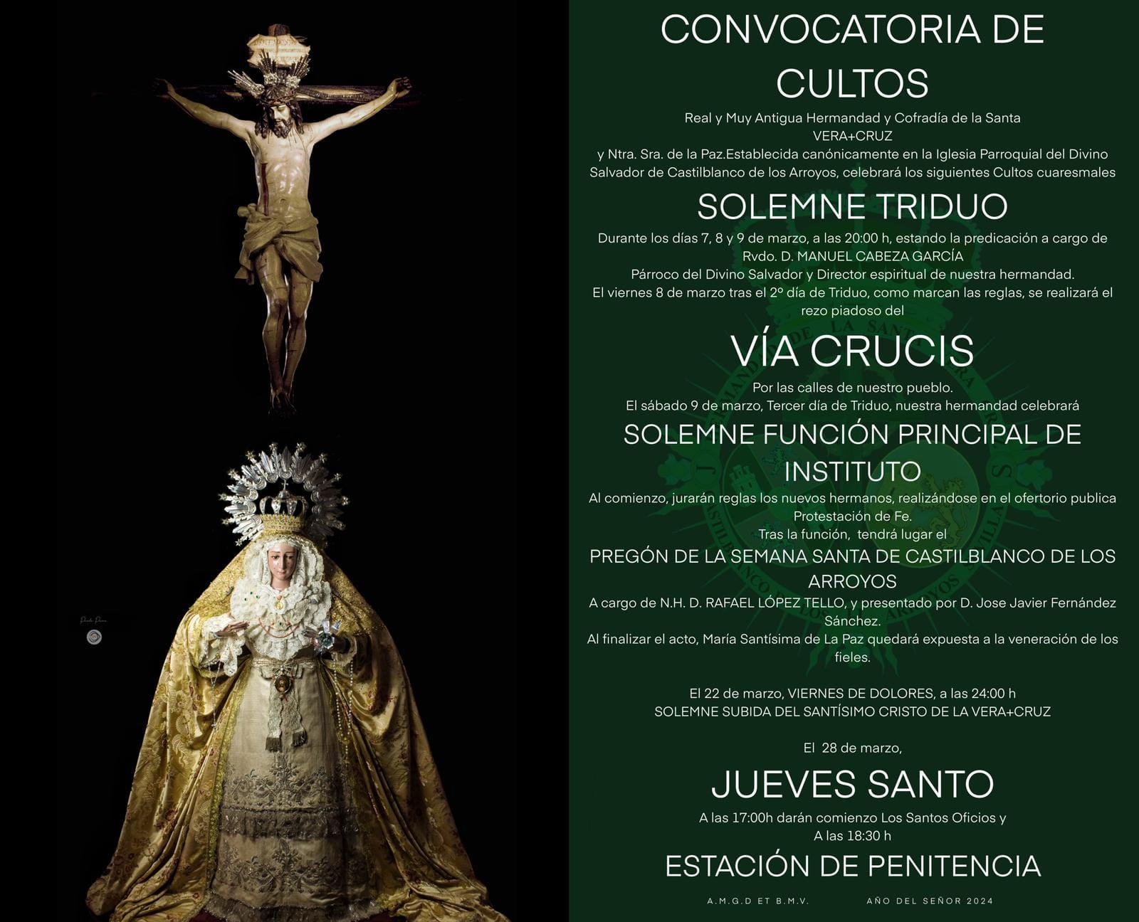 Tras el culto de hoy, segundo día de triduo, y como marcan las reglas, tendrá lugar el rezo del Vía Crucis por las calles de nuestro pueblo.