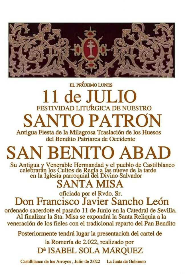La Hermandad Matriz de San Benito Abad celebra este lunes, 11 de julio, la Solemne Función en honor del Patrón.