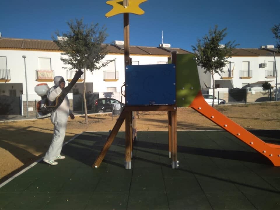 Una medida de prevención que el área de Servicios mantendrá en función de la evolución de la pandemia y que también se ha visto intensificada con tareas de limpieza e higienización en parques, zonas de juegos infantiles, espacios comerciales, así como en los accesos al centro de salud, y edificios públicos.