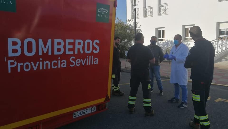 En la tarde de este jueves, 26 de marzo, un retén de bomberos perteneciente a la Diputación de Sevilla ha procedido a la desinfección de la Residencia Geriátrica Municipal Vicente Ferrer.