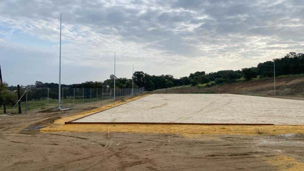 La pista, con unas dimensiones de 64x34 metros, de arena multifuncional, ya se encuentra perfectamente delimitada, habiéndose procedido al vallado de todo el espacio.