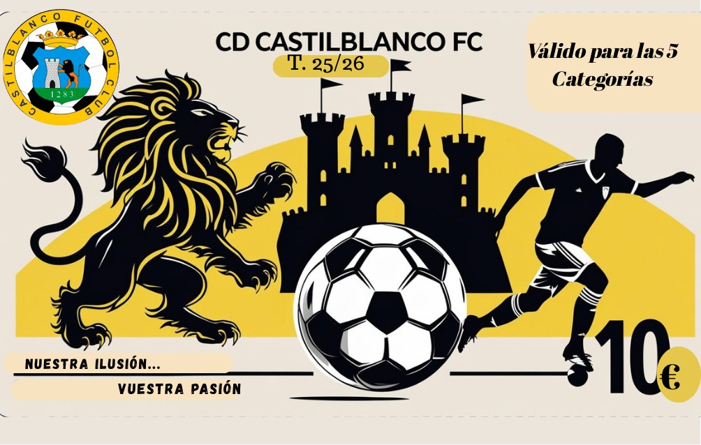 El Club Deportivo Castilblanco F.C. ha puesto en marcha su campaña de abonos de socio para la nueva temporada 2025/2026. Bajo el lema “¡Tu aliento es nuestra fuerza!”, el club invita a todos los vecinos a sumarse a su gran familia, apoyando a sus cinco categorías: Benjamín, Alevín, Infantil, Cadete y Juvenil.
