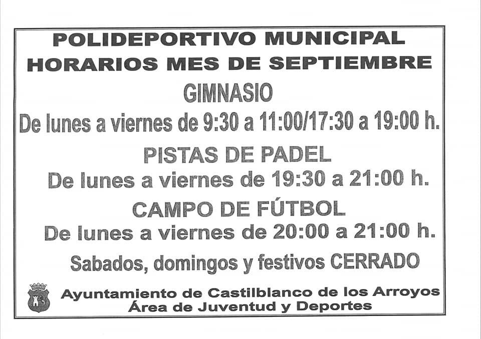 Gimnasio Municipal INSCRIPCIONES ANTES DEL 10 DE SEPTIEMBRE