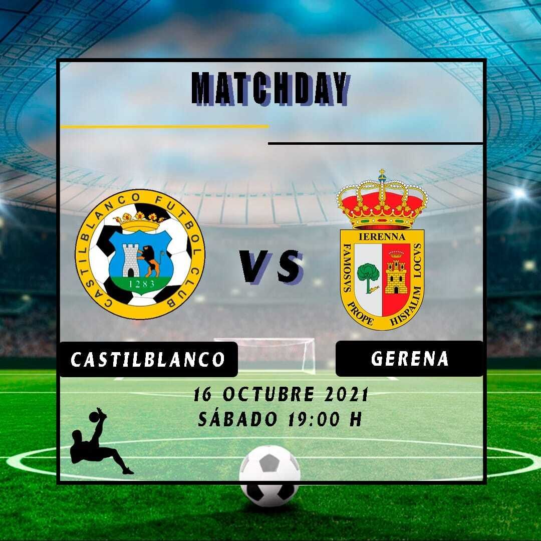 Vuelven los encuentros deportivos al Estadio Municipal de Deportes José Reyes García Canterla. Esta semana nuestros locales pertenecientes al Castilblanco F.C. se enfrentarán al Gerena. Será este este sábado 16 de octubre, a las 19:00 horas, con el patrocinio del Ayuntamiento, Surande, Construcciones Batea, Teslanet y el Bar Polideportivo.
